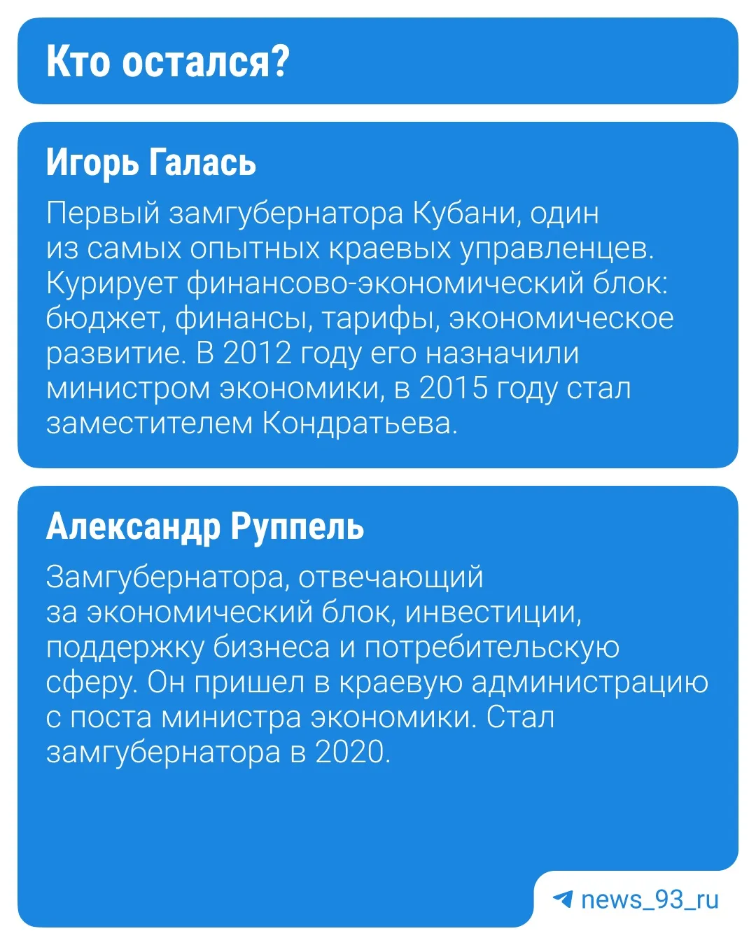⬆️В карточках @news_93_ru рассказываем, что о них известно, и кто из старой команды еще остался рядом с Вениамином Кондратьевым.