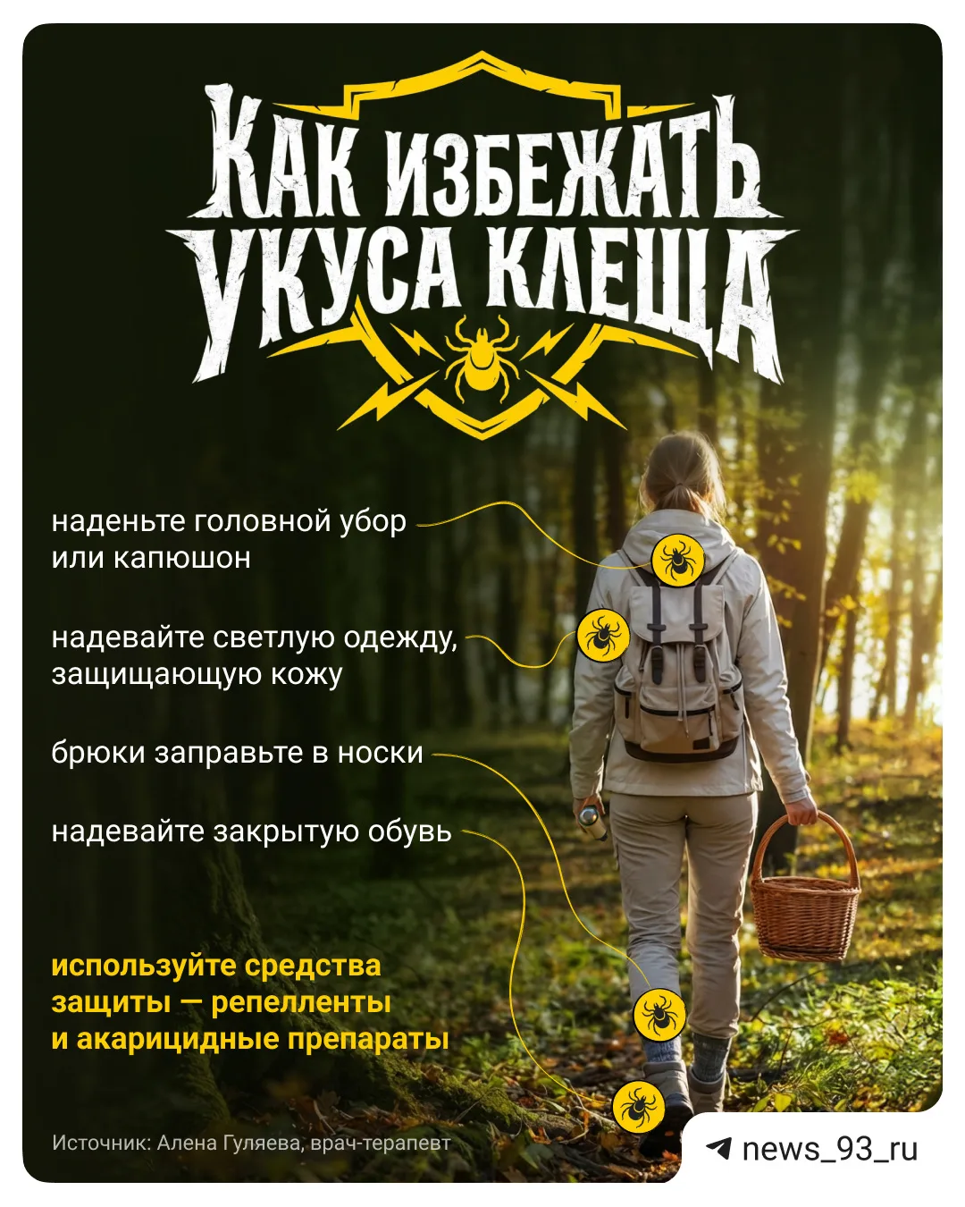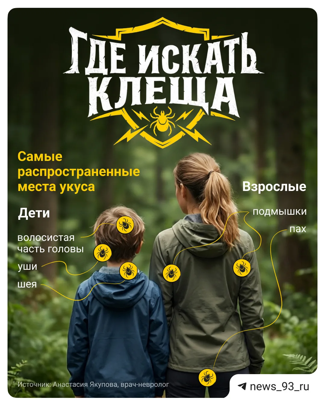 Где чаще всего кусает клещ и как этого избежать, читайте в карточках @news_93_ru ⬆️