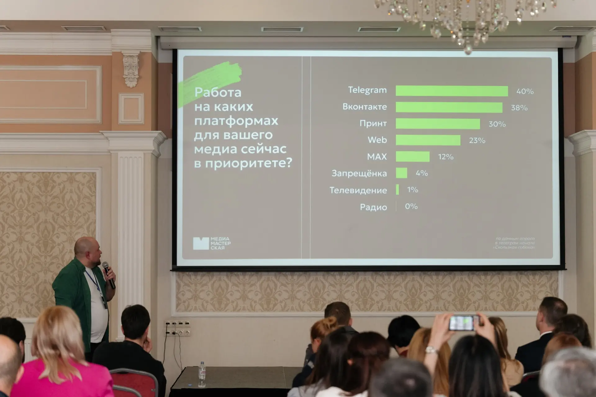 В зале — журналисты, SMM, пиарщики, маркетологи и бизнес.