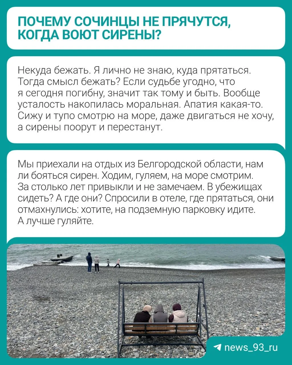 Наши коллеги @sochi1news спросили у отдыхающих на берегу, почему они в таком «дзене», хотя на улице вовсю орут сирены ⬆️