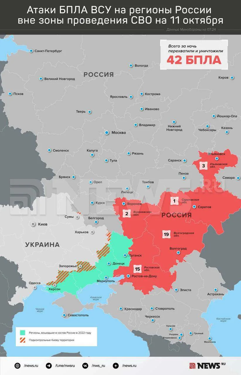 40 из них уничтожили над Крымом, 26 — над Астраханской областью и 19 — над Черным морем. Подробнее — в нашей инфографике.