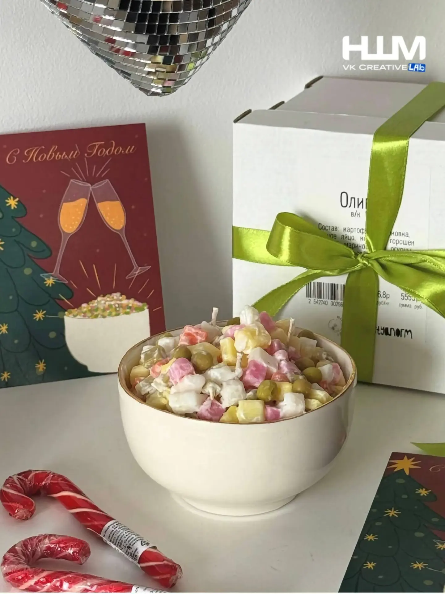 В сети была найдена свеча, в виде… полной тарелки новогоднего оливье 🐱