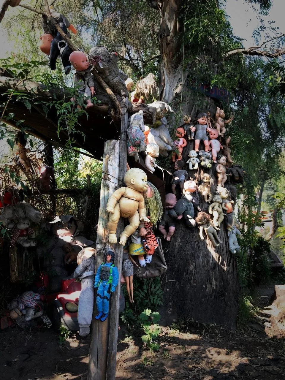Парень начал вешать куклы на деревья, чтобы «успокоить призрак девочки» — и в итоге этот лес игрушек стал настоящим крип-точкой. Слухи о шёпоте кукол и мистике делают его жутким must-see