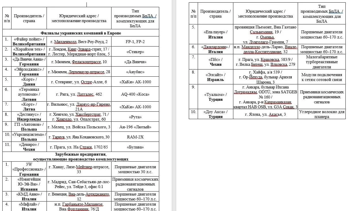❗️Минобороны РФ обнародовало названия и адреса филиалов украинских предприятий в Европе, где производят БПЛА для ударов по России