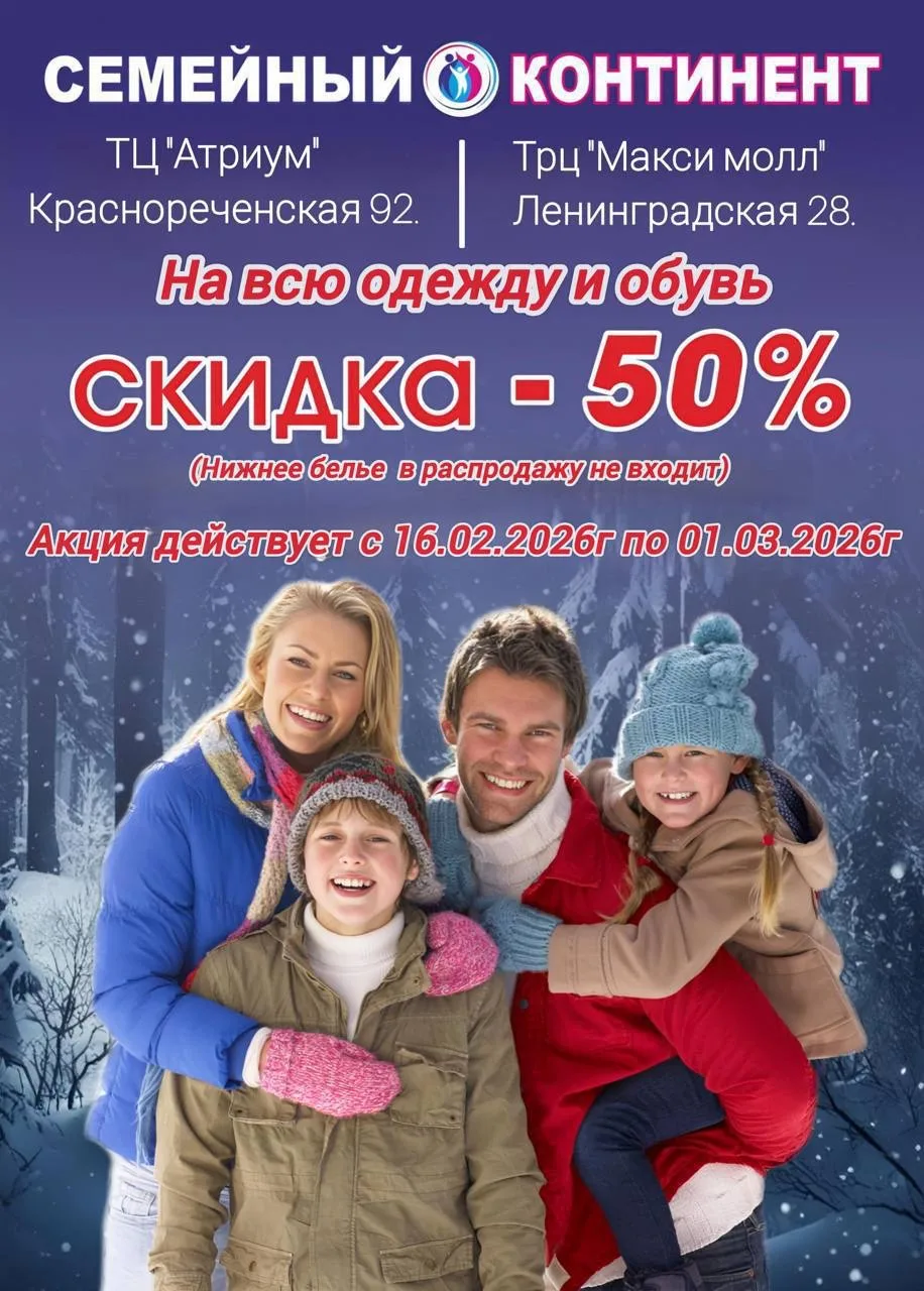 Мечтаете обновить гардероб без удара по кошельку? Тогда вам точно к нам! Магазины "Семейный континент" объявляют грандиозную распродажу: