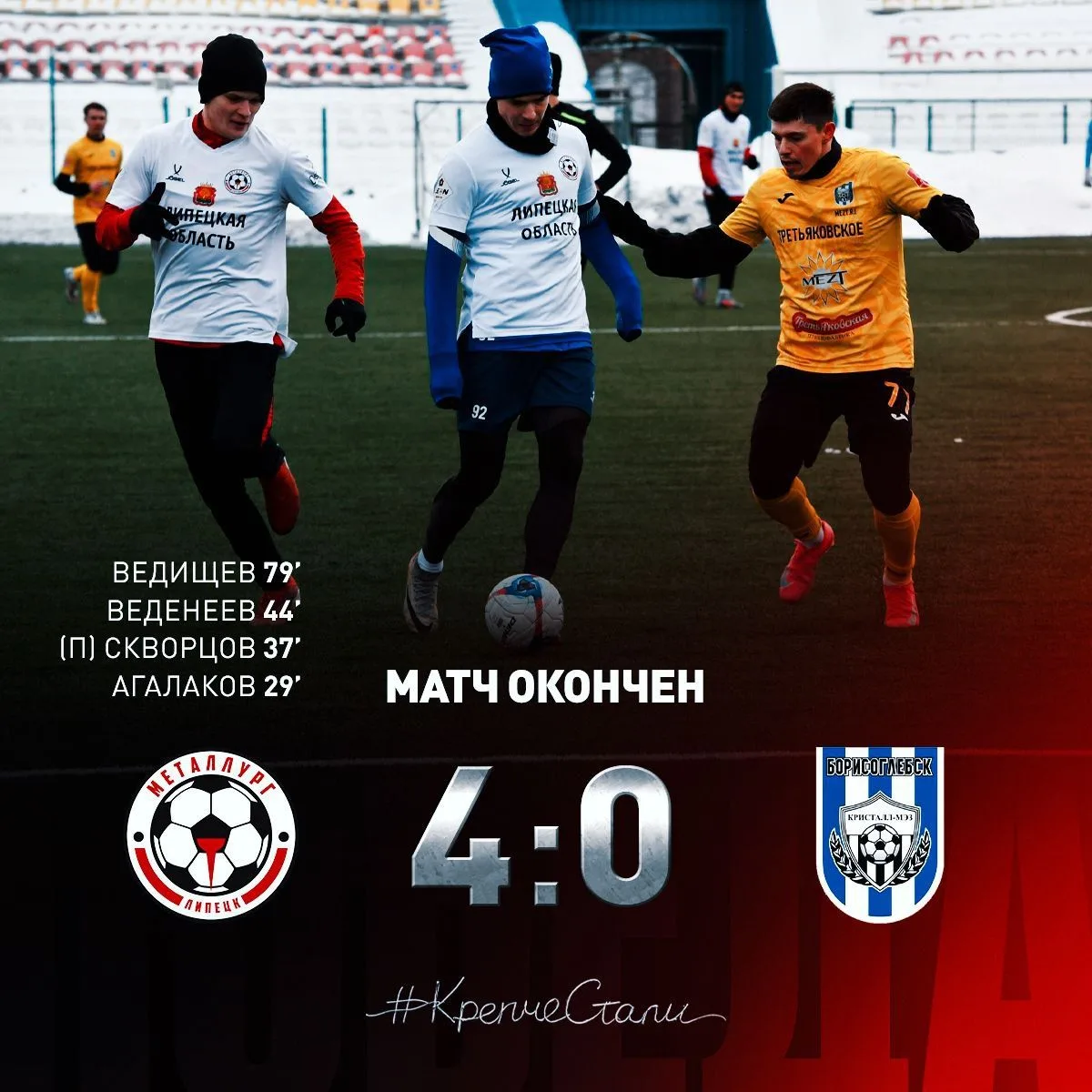 Липецкий «Металлург» разгромил «Кристалл-МЭЗТ» со счётом 4:0. Узнайте, кто отличился голами и как проходила игра.