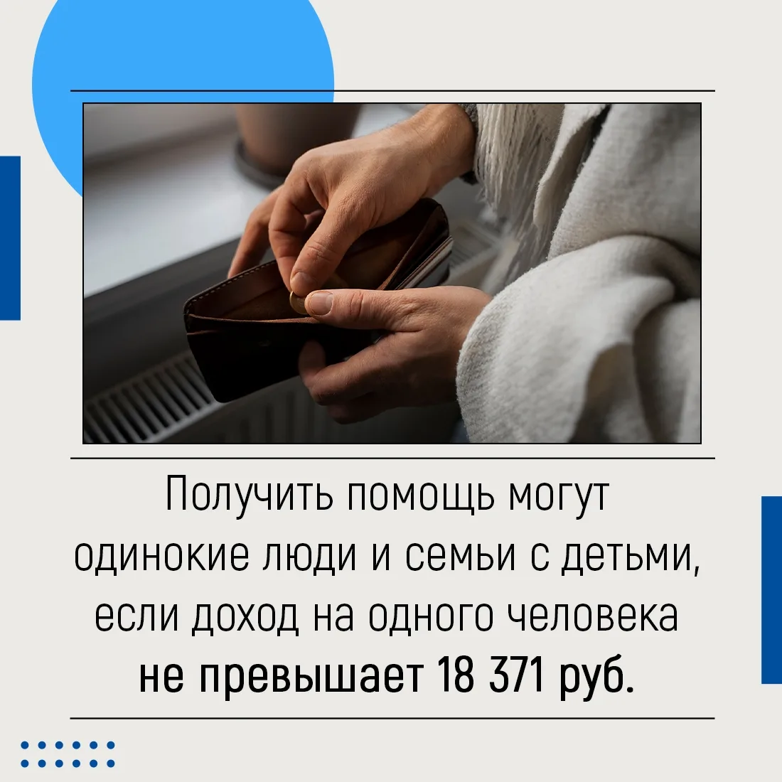 Поддержка предусмотрена для одиноких людей и семей с детьми, где доход на одного члена семьи не превышает 18 371 рубля.