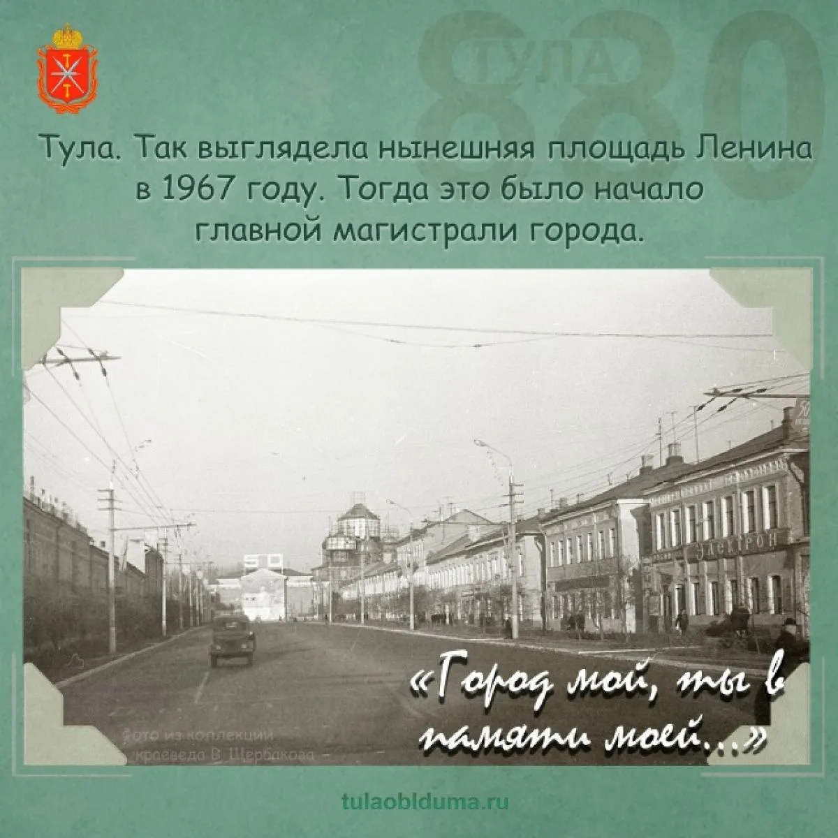 Он приурочен к 880-летию Тулы. В рамках акции на официальных страницах регионального парламента в соцсетях публикуются архивные фотографии города, рассказывающие, как выглядела областная столица в ХХ веке. В проекте использованы редкие фотографии из коллекции краеведа Владимира Щербакова.
