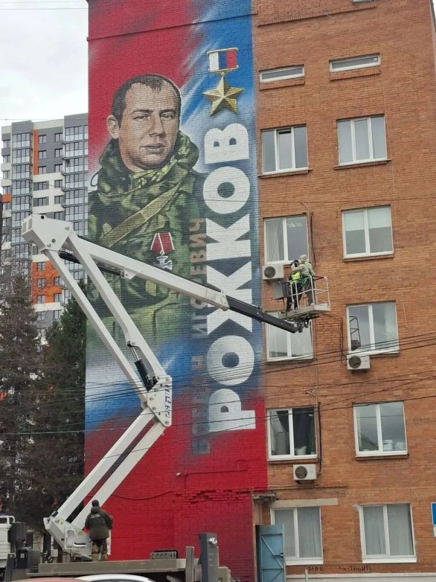 На здании Минздрава в Туле создают граффити в честь Героя России Богдана Рожкова.