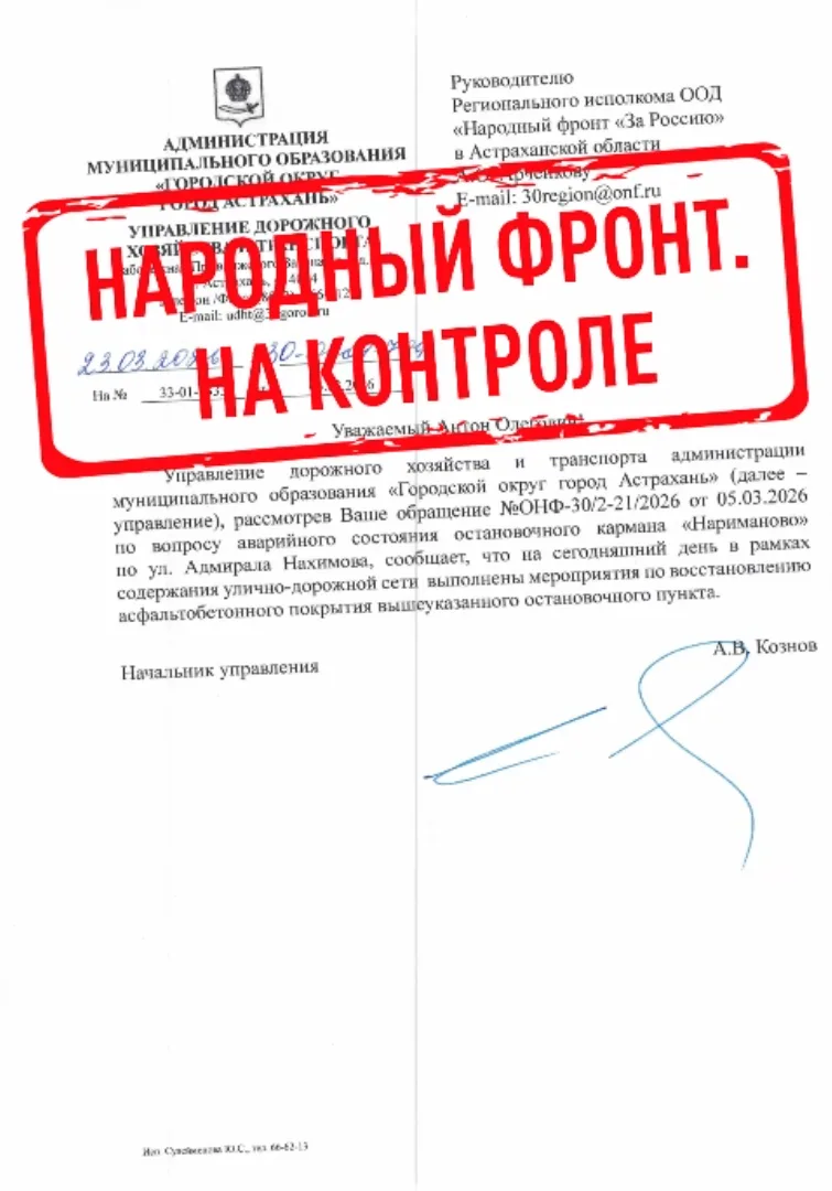 Народный фронт направил запрос в прокуратуру Астраханской области. Транспортное сообщение необходимо восстановить.