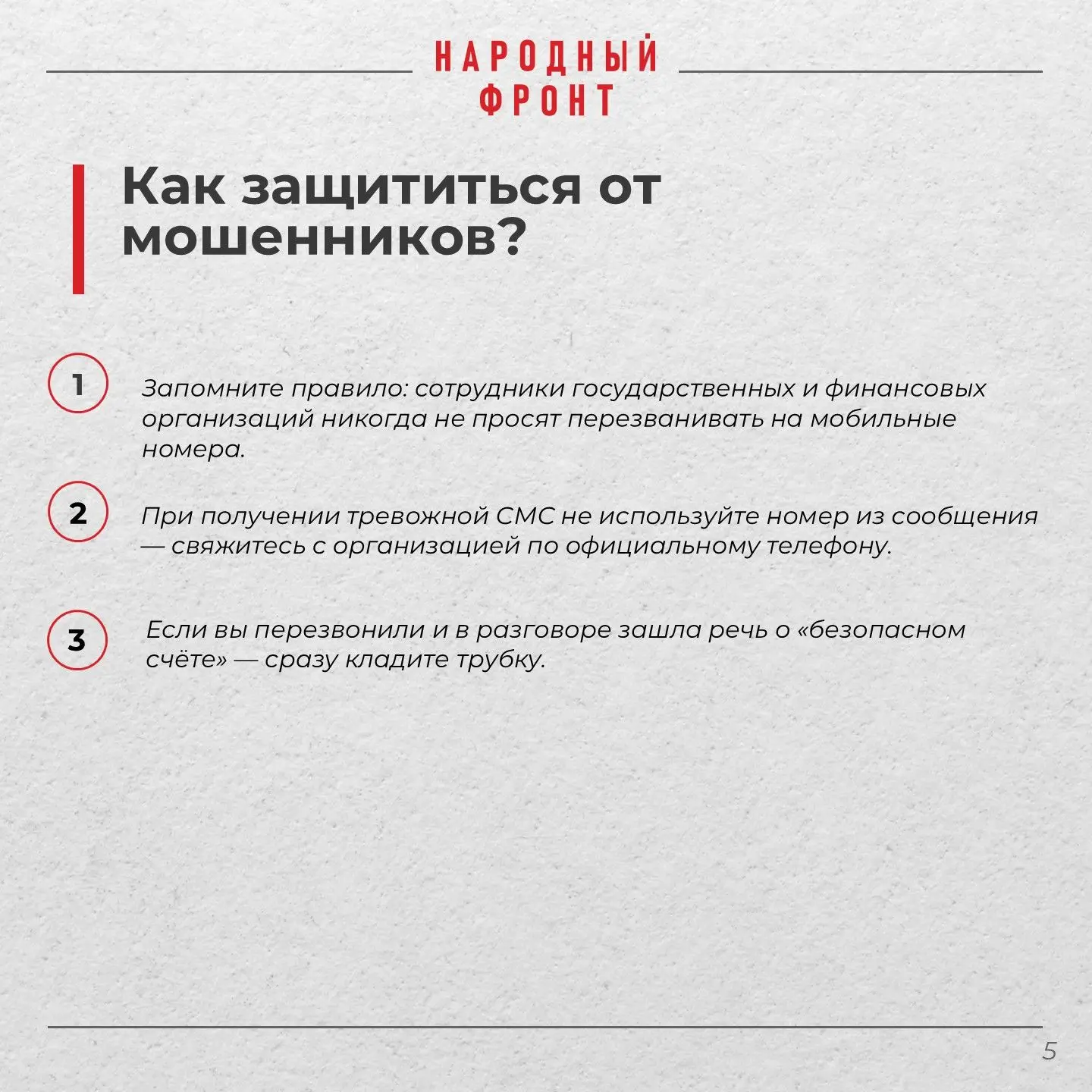 В карточках к посту - краткие памятки: как отличить реального сотрудника от самозванца и не перейти по опасной ссылке. Если столкнулись с подозрительными звонками или сообщениями - расскажите об этом на платформе Народного фронта МОШЕЛОВКА.РФ