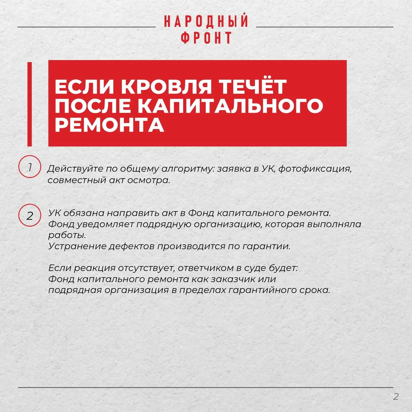 Народный фронт продолжает держать ситуацию на контроле. Следим, чтобы всё сделали в срок.