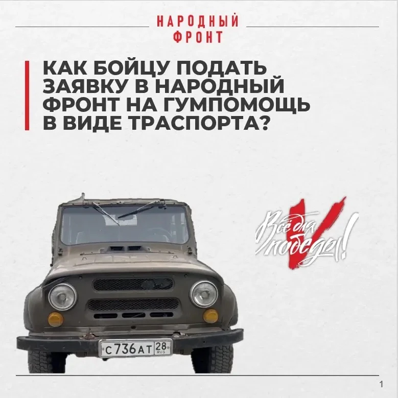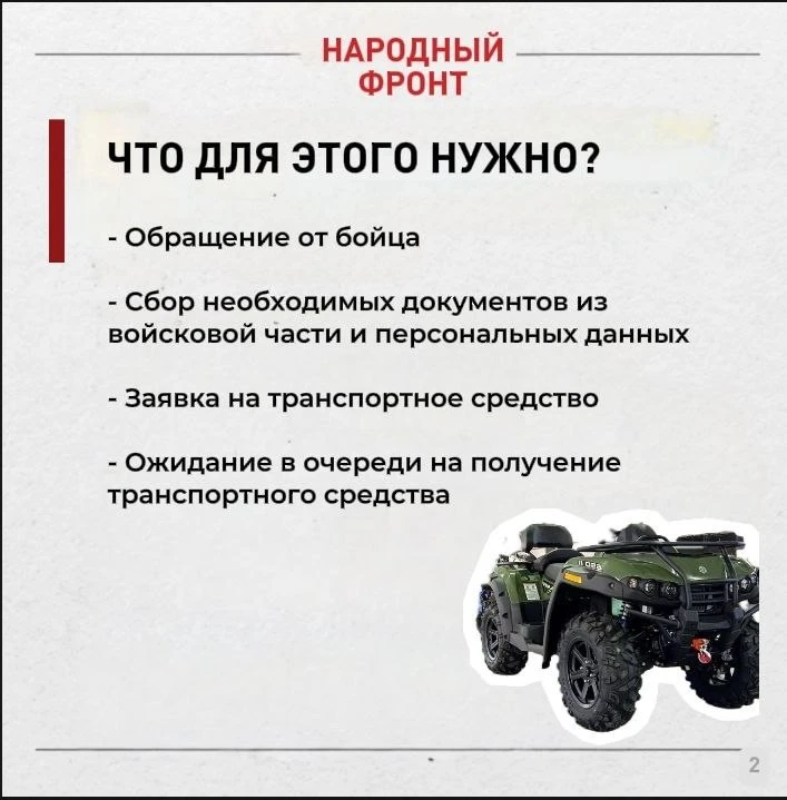 Рассказываем подробно о том, как бойцам обратиться в Народный фронт и оставить заявку на автомобиль, мотоцикл или другой вид транспорта для СВО.