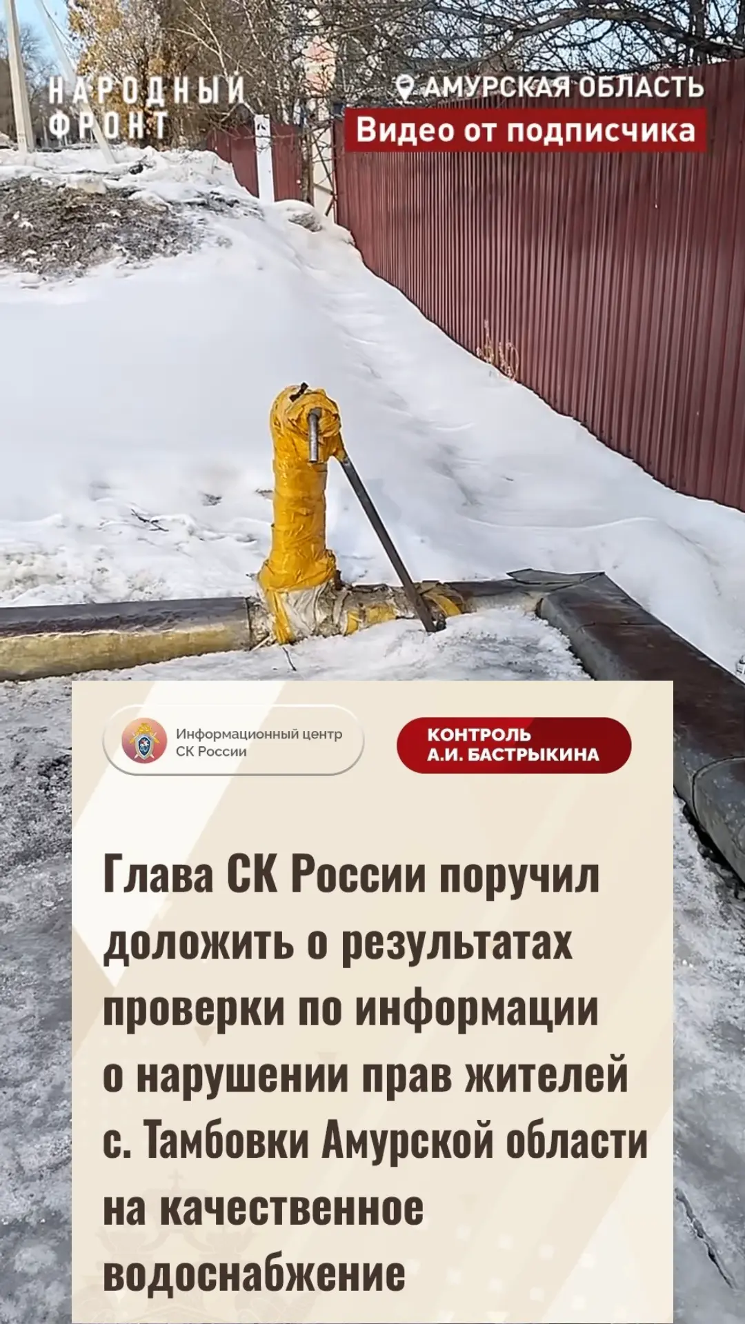 Бастрыкин поручил доложить о результатах проверки водоснабжения в селе Тамбовка.
