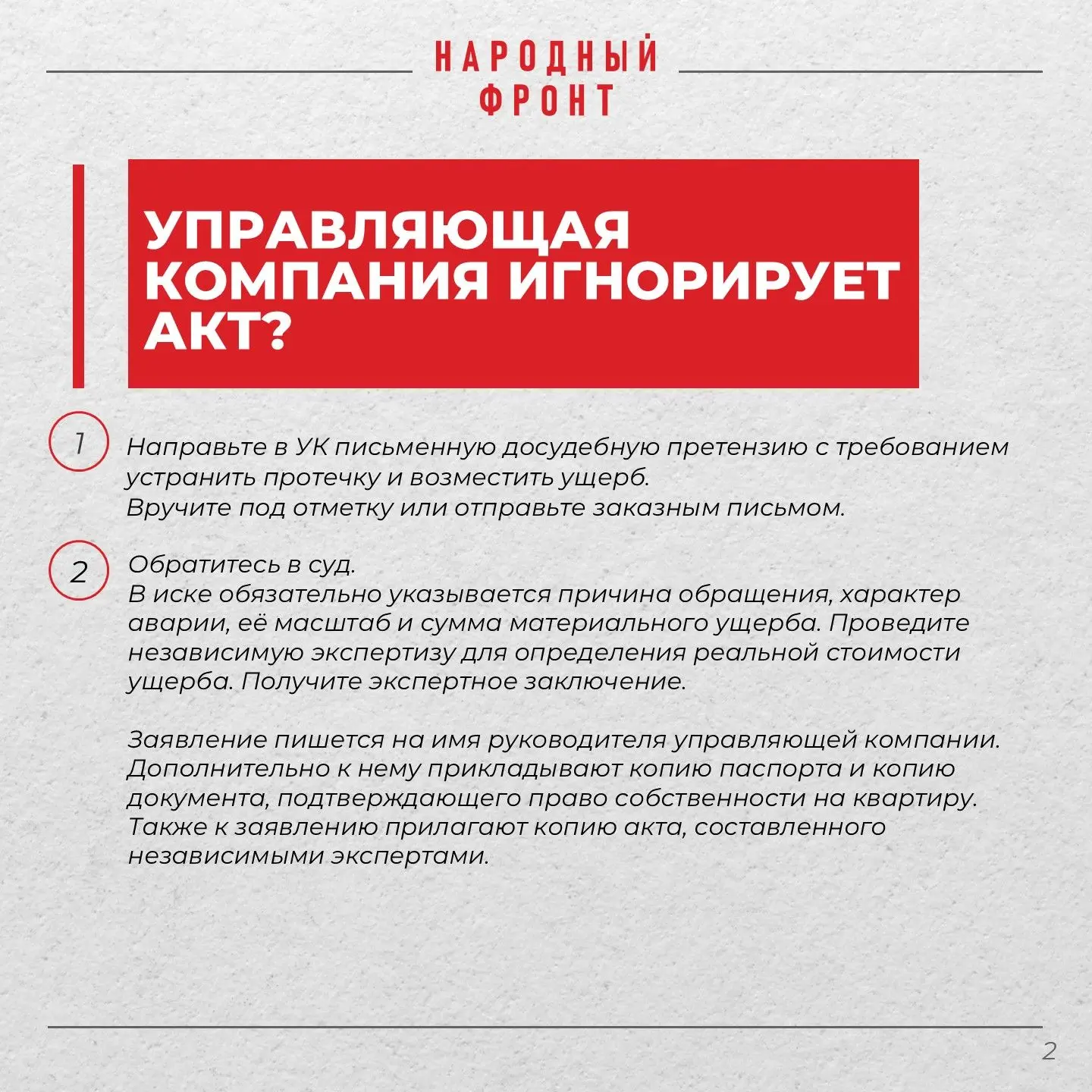 Народный фронт продолжает держать ситуацию на контроле. Будем следить, чтобы расчёты перешли в реальный ремонт.