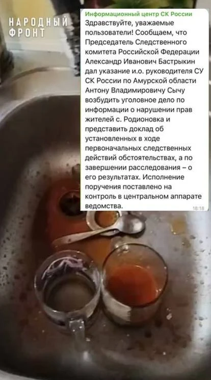 После публикации новости Народным фронтом, о проблеме с качеством воды жителей Бурейского района, мы получили официальный комментарий Следственного комитета Российской Федерации.