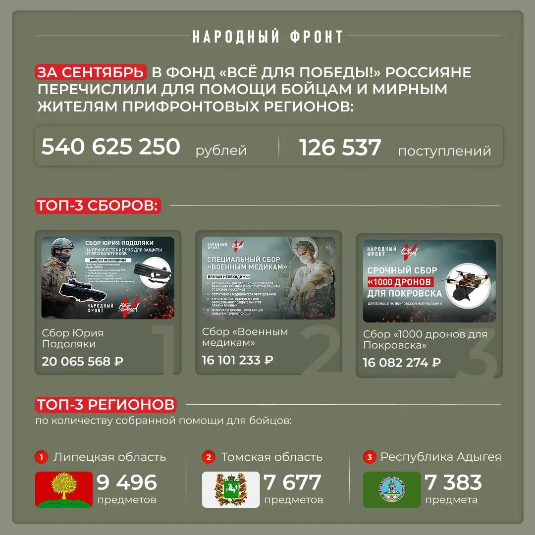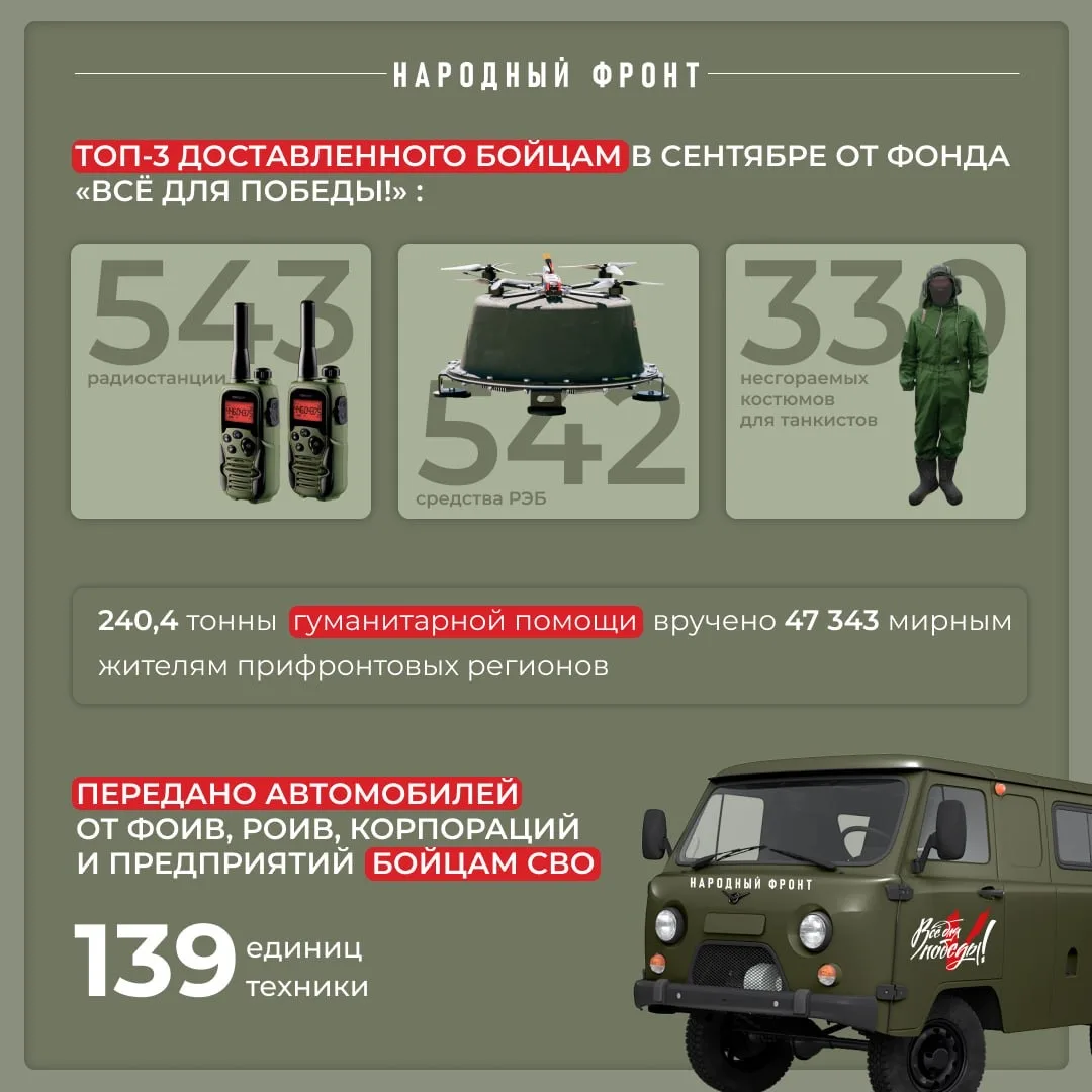 👉🏻 Народный фронт делает "ВСЁ ДЛЯ ПОБЕДЫ!", бесперебойно поддерживая бойцов и мирных жителей прифронтовых регионов. НФ делает "ВСЁ ДЛЯ РОССИИ!", выясняя проблемы россиян и докладывая Президенту о возможных их решениях. Будьте с Народным фронтом! И словом и делом!