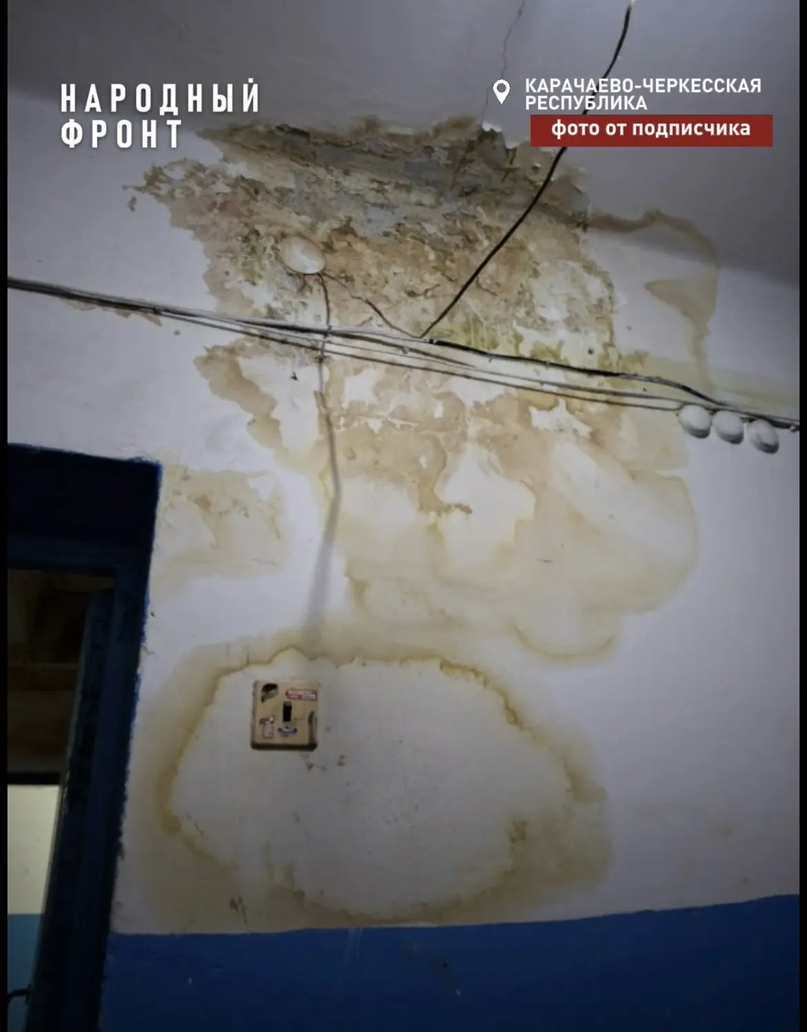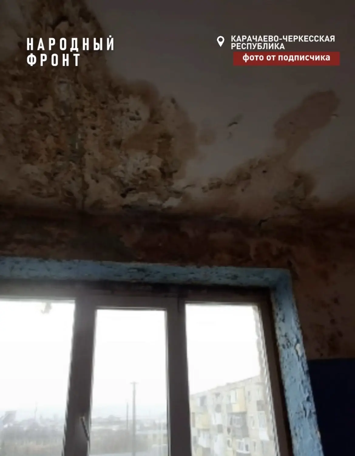 В Народный фронт обратилась Марина Алфёрова из Черкесска. Женщина живет на улице Лободина, 53, в квартире 83. Кровля в доме протекает так, что вода добирается до электропроводки.