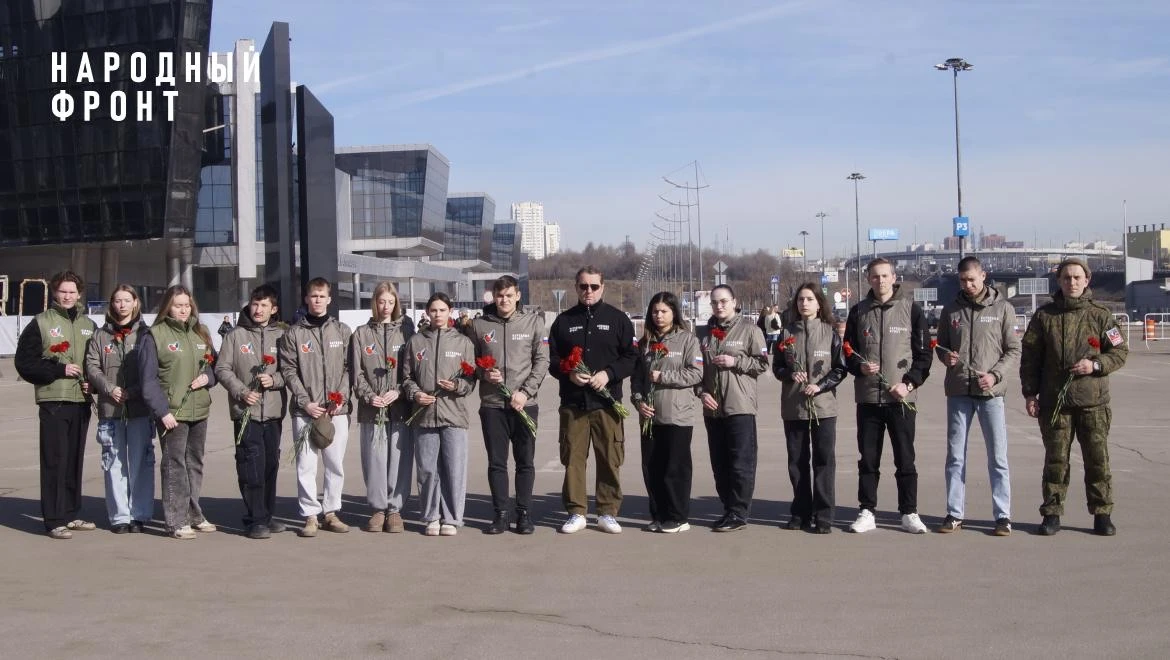 Руководитель Исполкома НФ Михаил Кузнецов и участники "Команды Путина" – телеведущая Полина Цветкова и чемпион мира по боксу Денис Лебедев – возложили цветы к посольству Сербии.