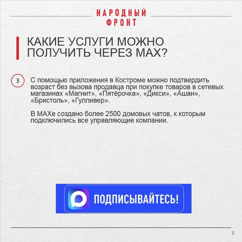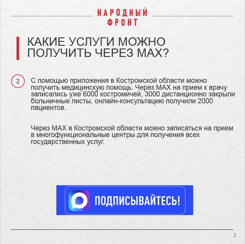 В официальном канале Народный фронт I Костромская область в приложении MAX — вся информация выходит раньше, чем в других источниках, контент грузится быстро и без задержек.