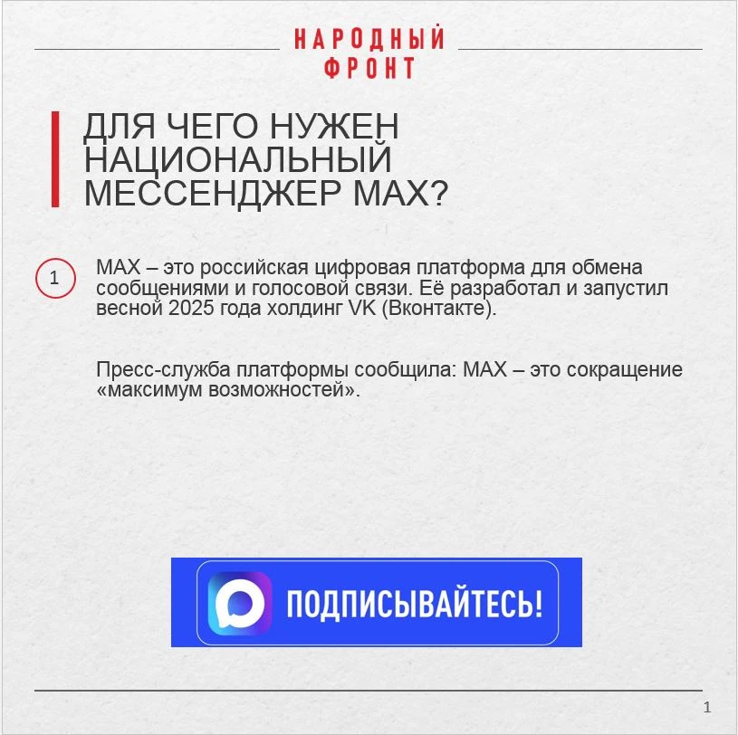 Подпишись на канал Народного фронта в МАХе и оставайся в курсе важных событий!