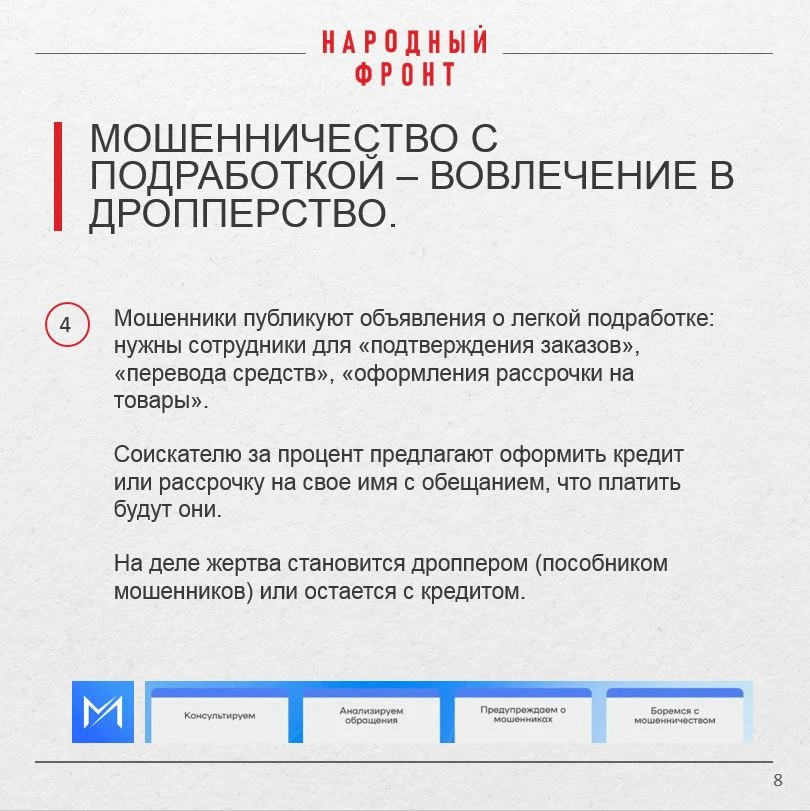 Эксперты проекта Народного фронта "Мошеловка. РФ" подготовили ряд полезных советов. Смотрите карточки и будьте бдительны.