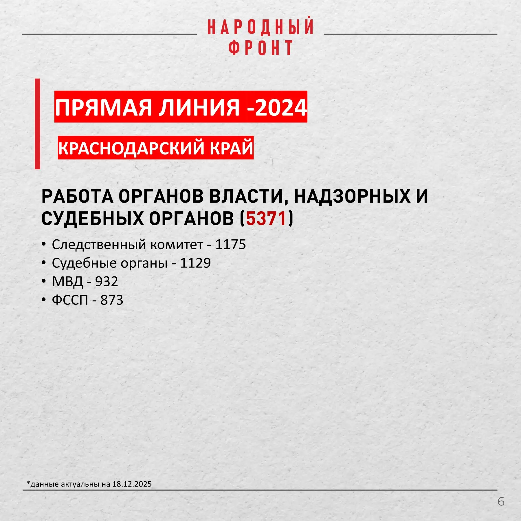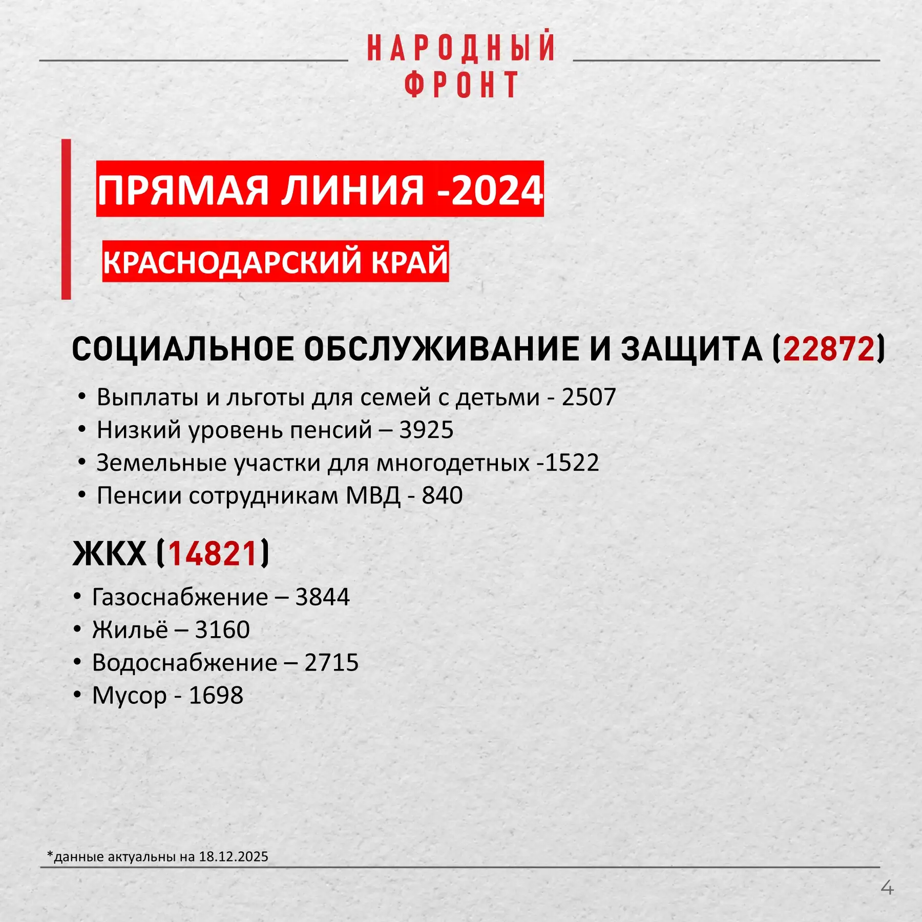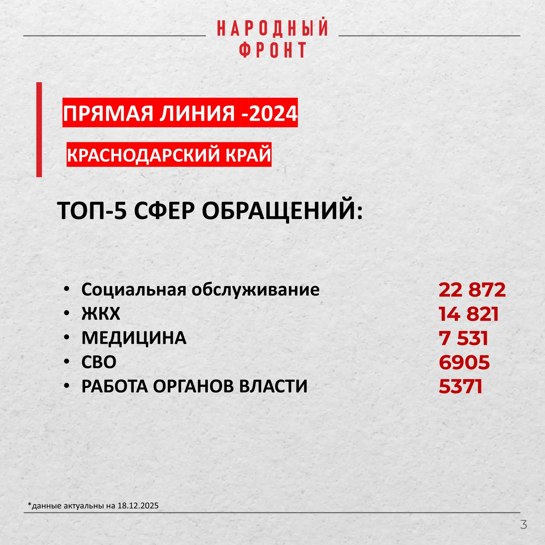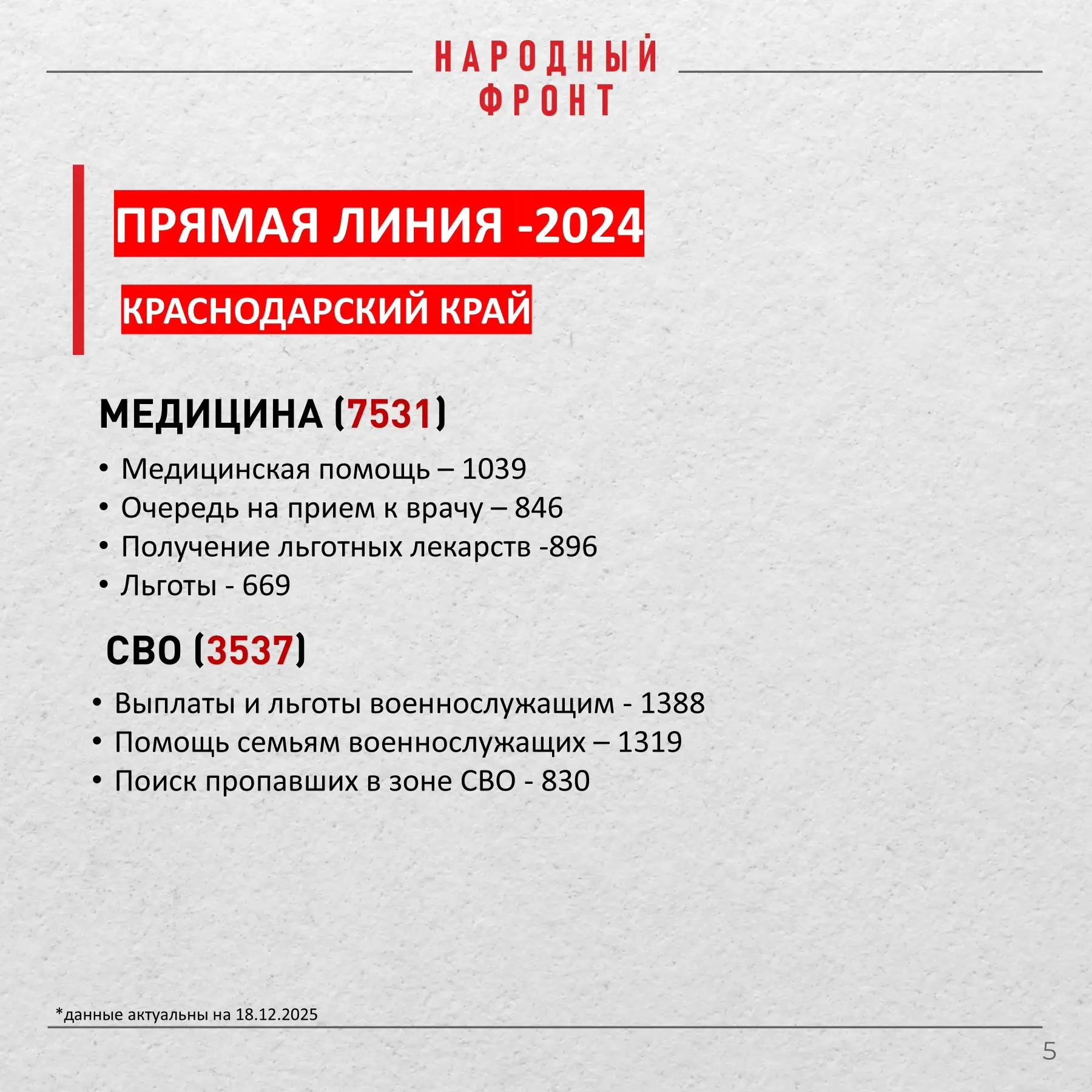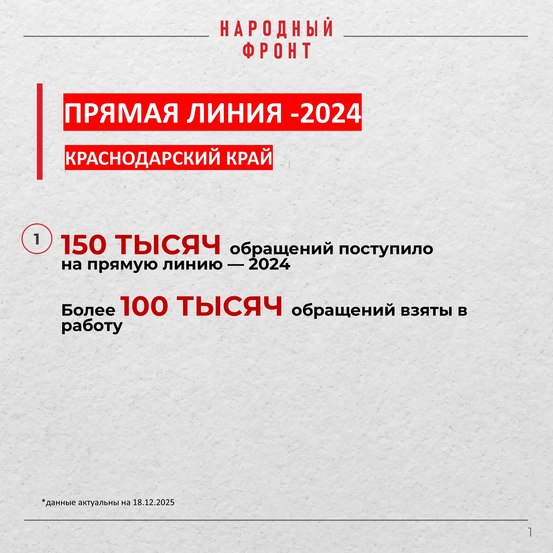 Народный фронт подвёл итоги прямой линии с президентом за 2024 год по обращениям из Краснодарского края.