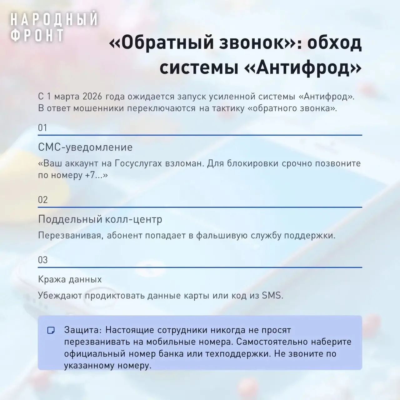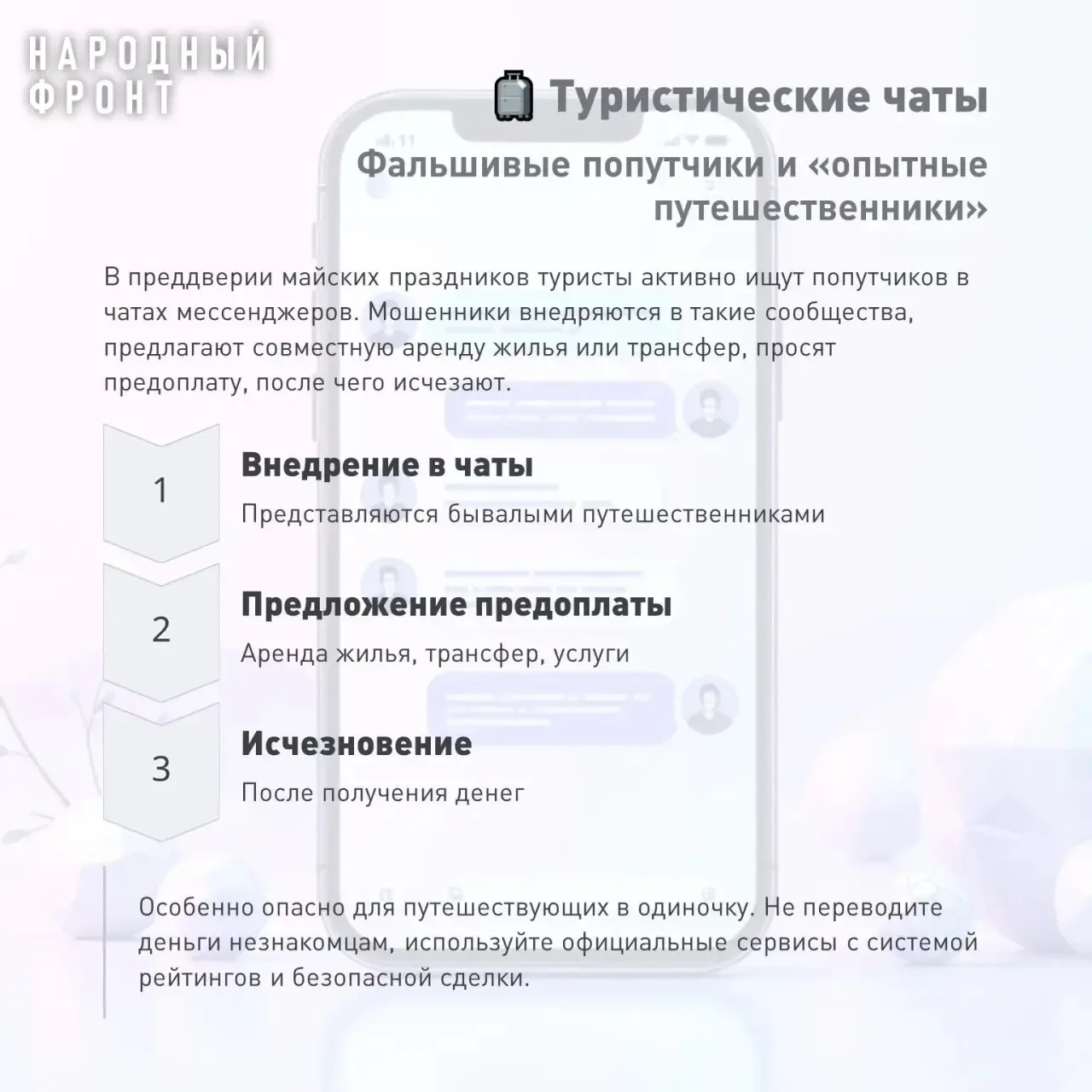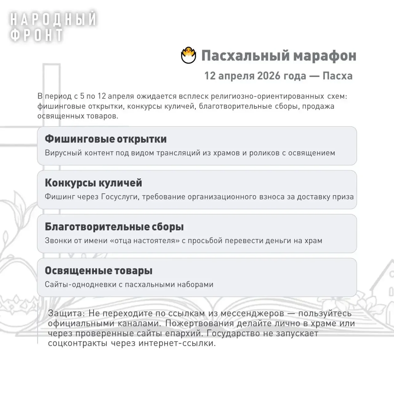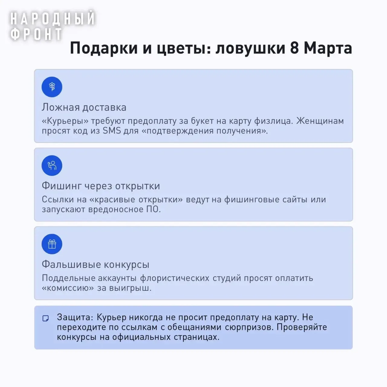 Народный фронт напоминает: не платите аванс незнакомцам, не кликайте по ссылкам из сомнительных SMS/писем, не сообщайте коды из сообщений и всегда проверяйте данные официально.