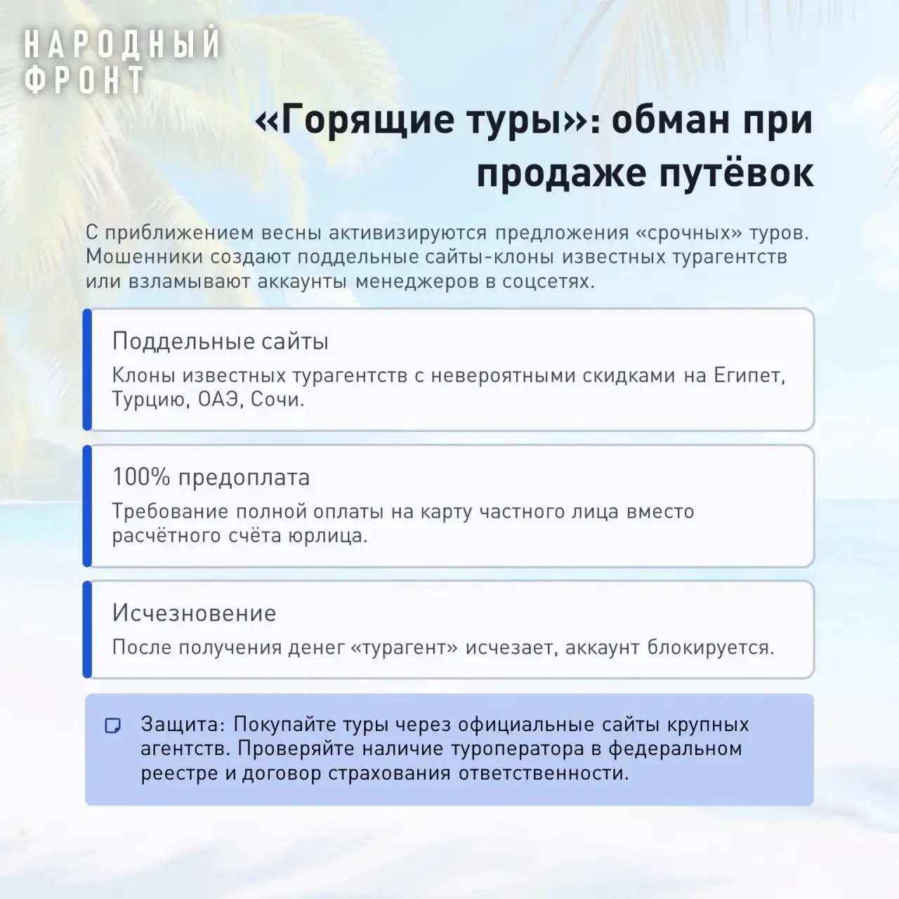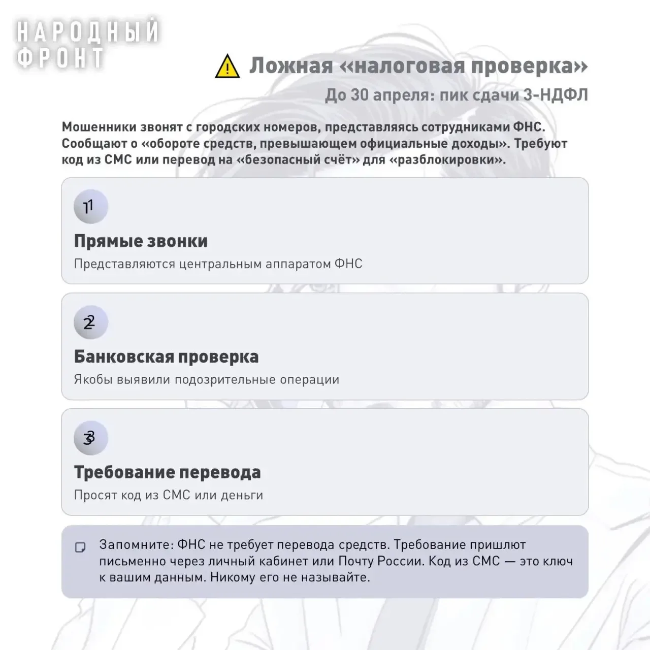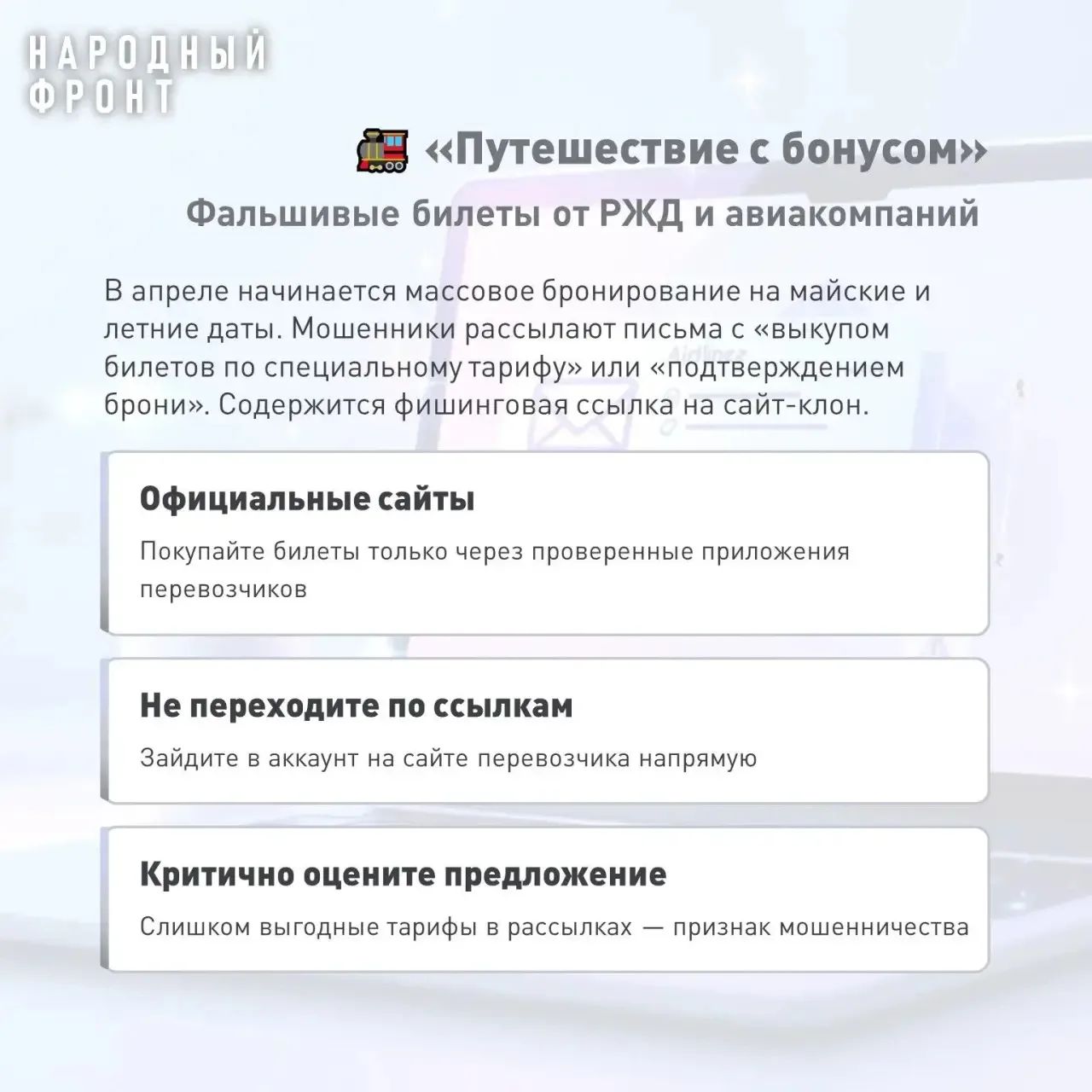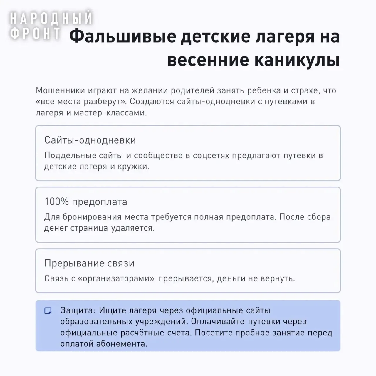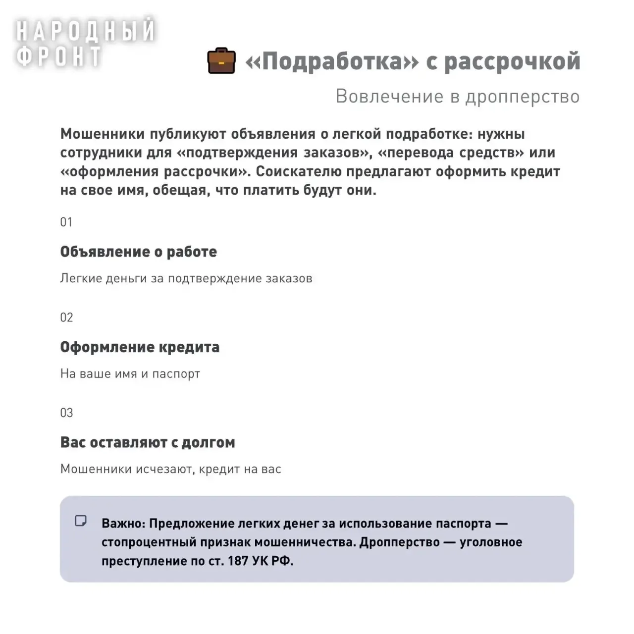 Народный фронт напоминает: не платите аванс незнакомцам, не кликайте по ссылкам из сомнительных SMS/писем, не сообщайте коды из сообщений и всегда проверяйте данные официально.