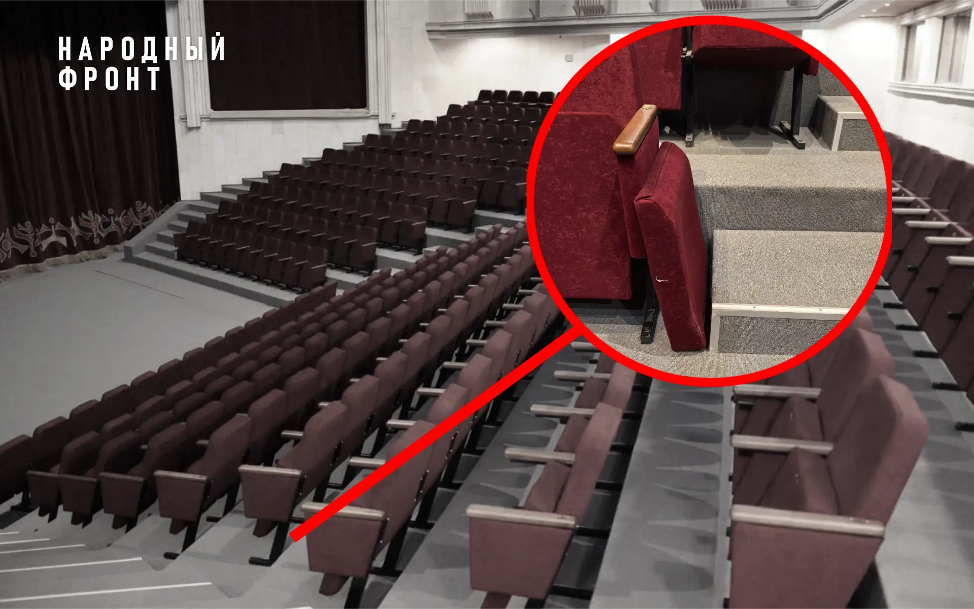Необходимость замены областные власти публично объяснили ужесточением требований безопасности: если раньше допускалось деревянное основание, то сейчас – только металлическое. Но, как выяснил Народный фронт, основание установленных стульев и так из металла.