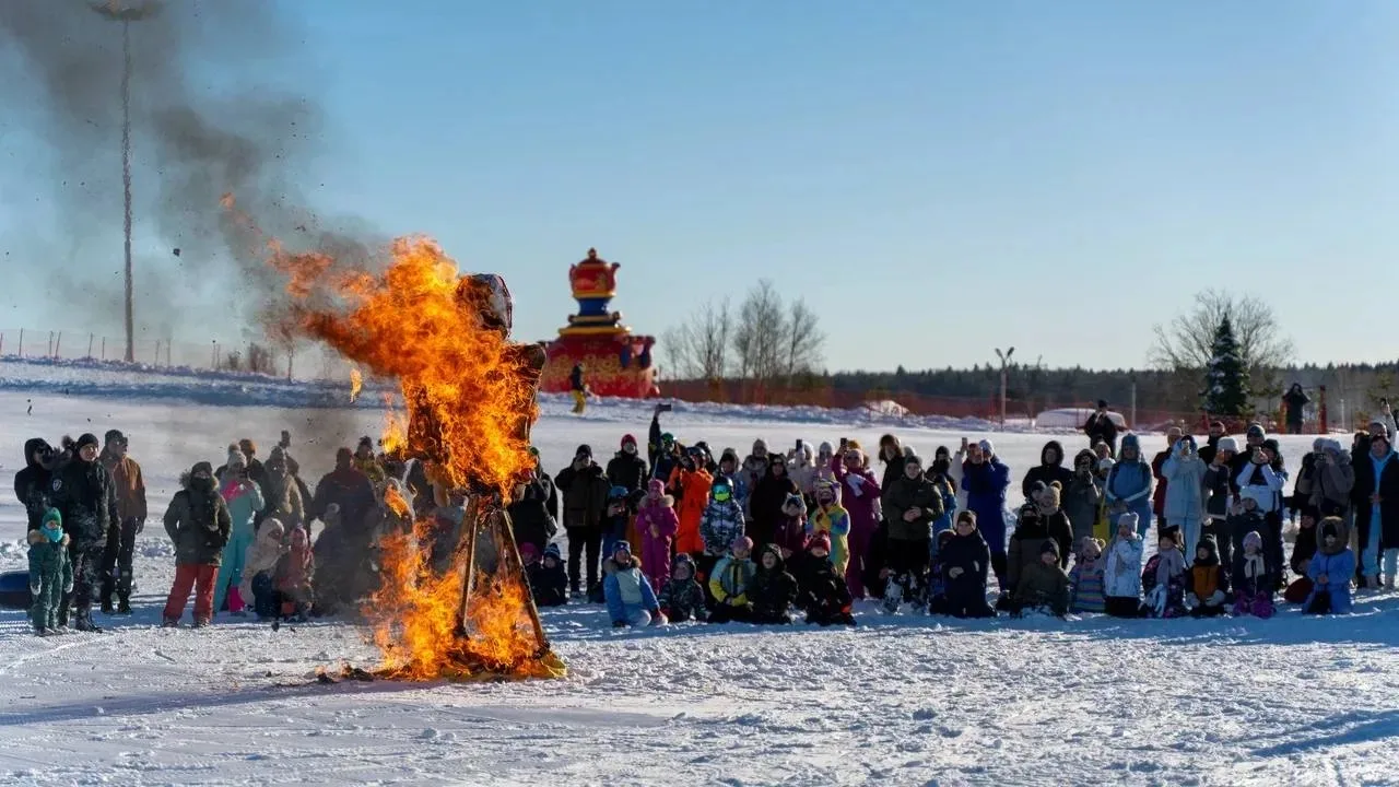 🔥 Кульминация праздника в 15:00 — традиционное сжигание чучела Масленицы!