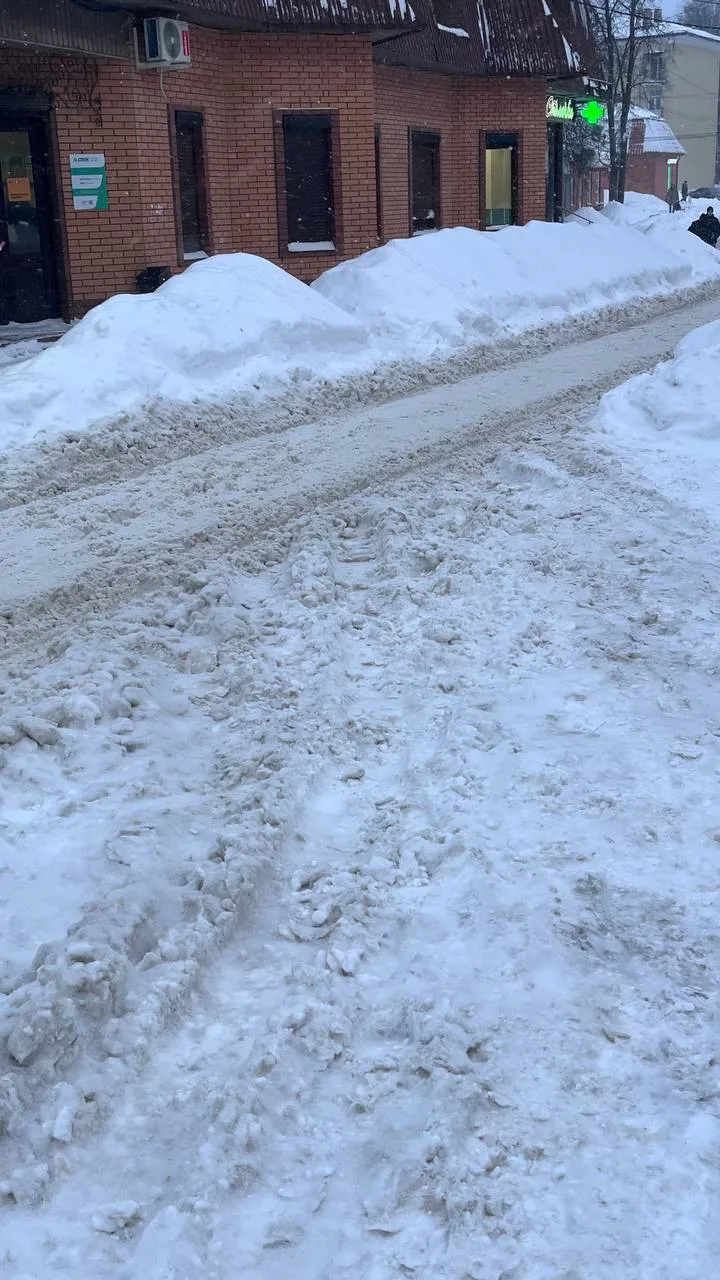 А так же тротуары,дворник в снегопад провел лопатой,тротуар узкий и весь в снегу.Снег ни разу не вывезли.