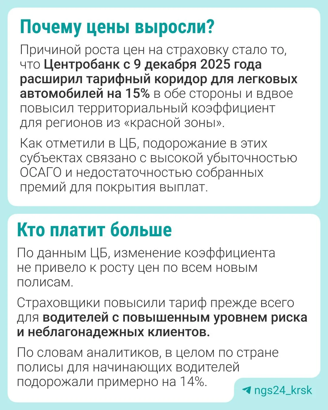 Средняя стоимость страховки в некоторых регионах России выросла почти в три раза с декабря 2025 года.