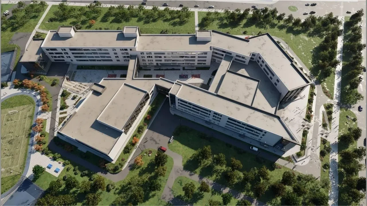 Внутри разместят четыре учебно-административных блока для начальных, средних и старших классов, а также медицинский блок, актовый зал, библиотека, пищеблок, мастерские по столярному делу, кройки и шитья, домоводству, деревообработке.