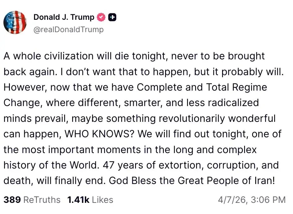 "Ночью Иран погибнет. Не станет целой цивилизации, её не вернут обратно"