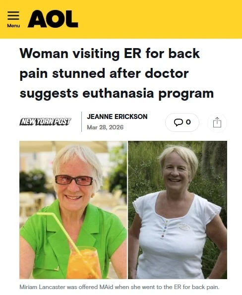 Канадская женщина обратилась в отделение неотложной помощи с болями в спине, и ей предложили эвтаназию.