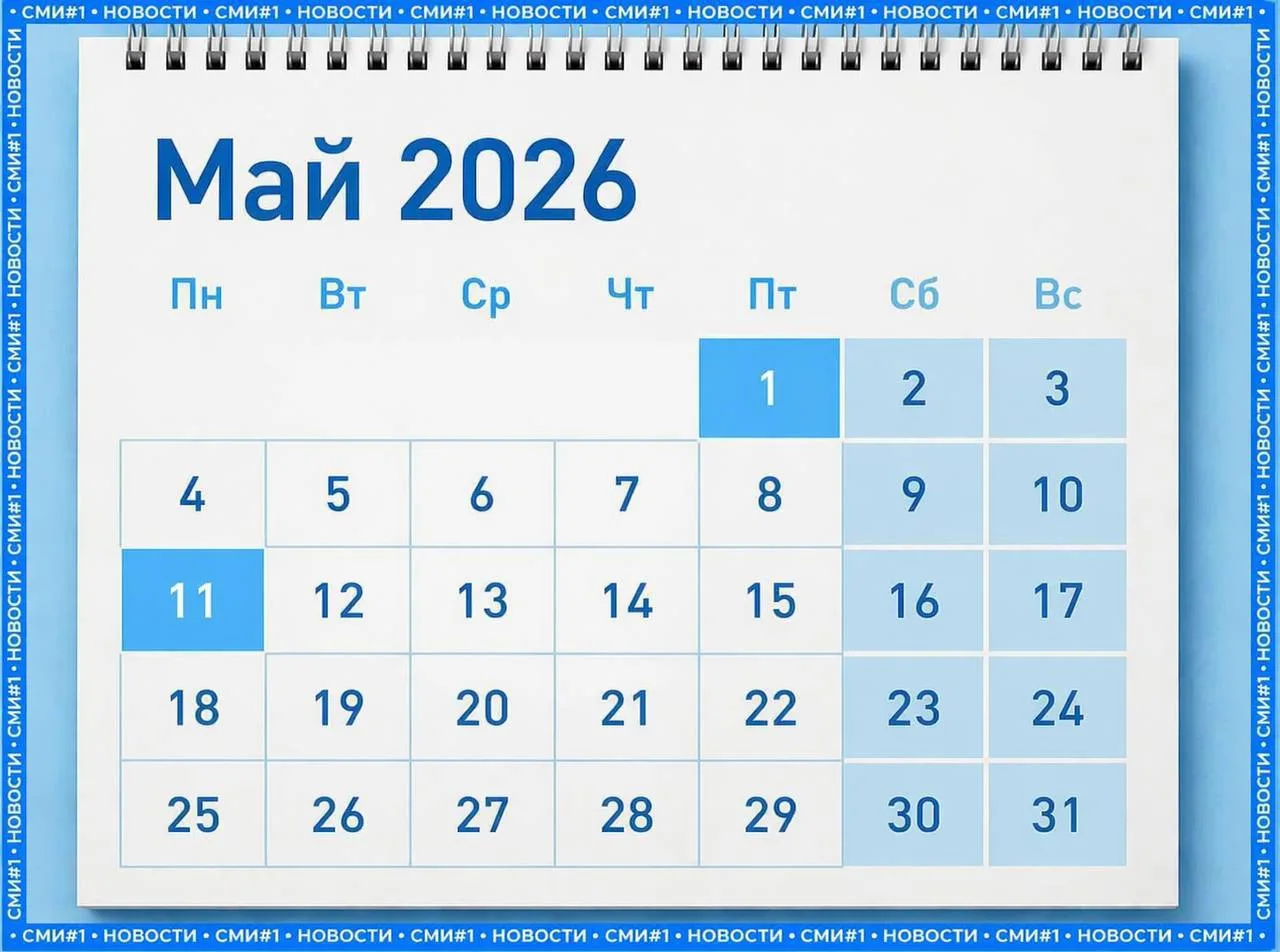 🗓Россиян ждёт всего 19 рабочих дней в мае 2026 года