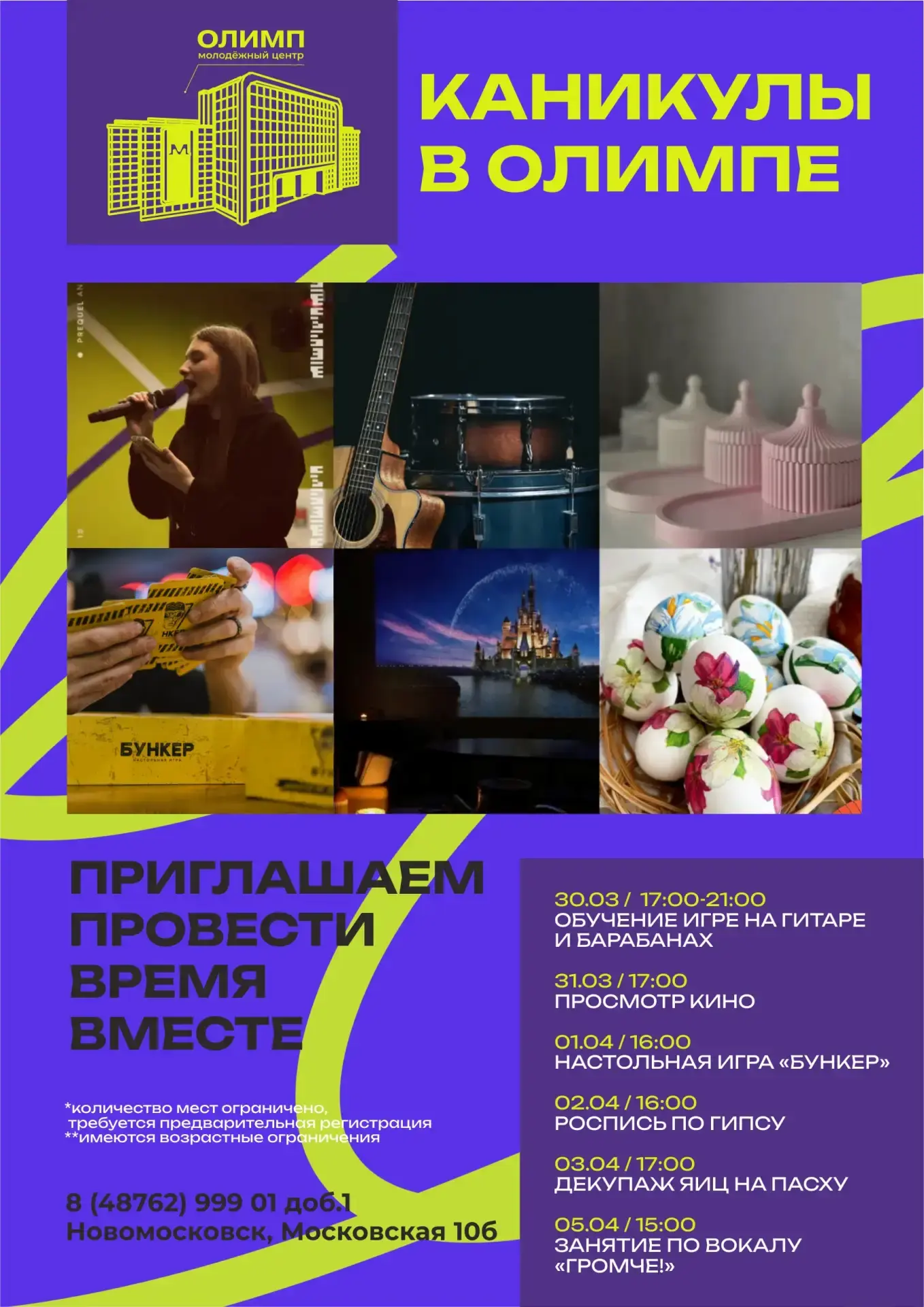С 27 марта по 5 апреля в Новомосковске для школьников проходят весенние каникулы. В это время на базе 28 школ города работают лагеря с дневным пребыванием, где отдыхают около 2450 детей. Для них организовано трёхразовое питание, а для младших школьников при необходимости — сон.