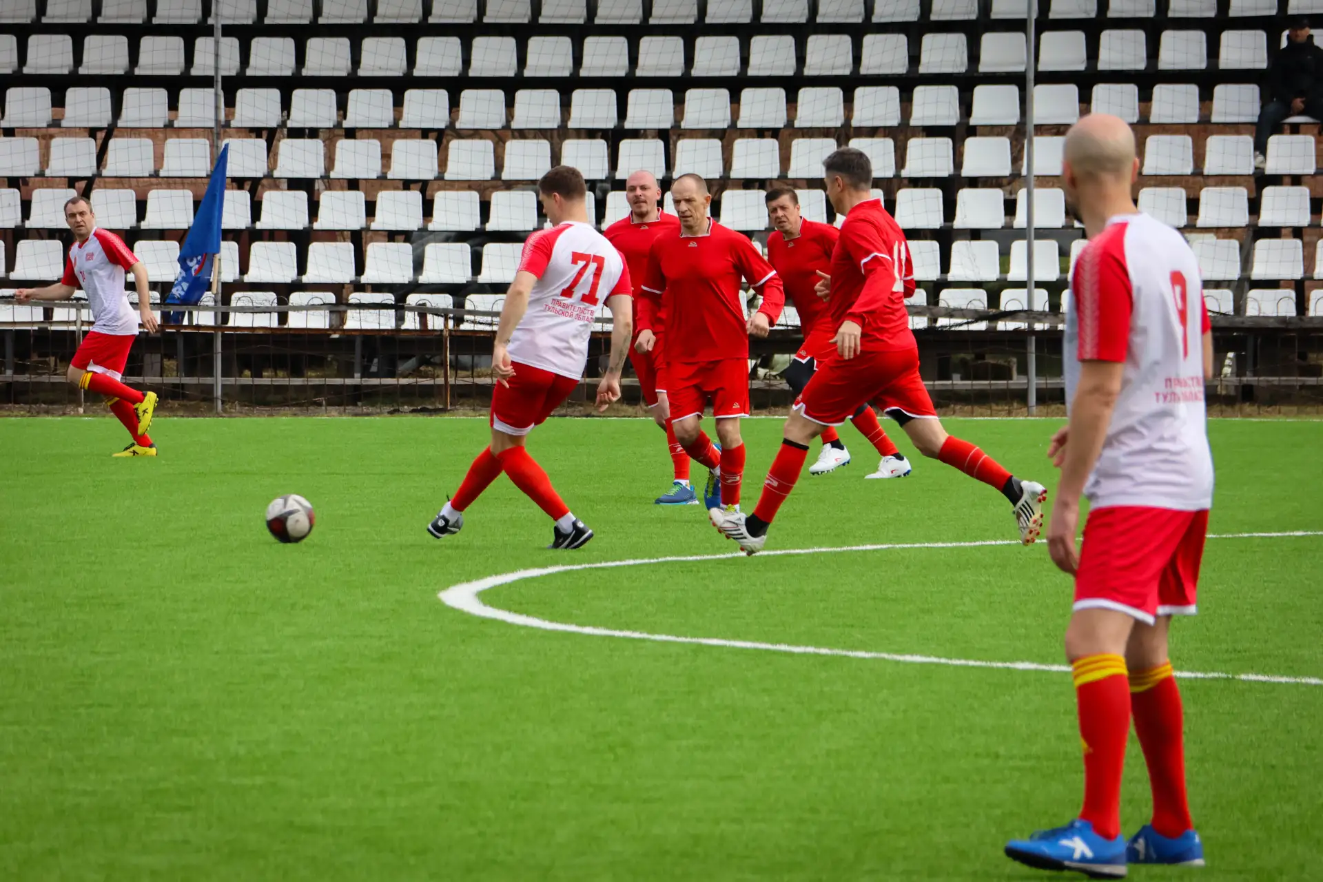 На стадионе «Химик» состоялся товарищеский футбольный матч между сборной Новомосковска и командой Правительства Тульской области. Мероприятие было организовано при участии партии «Единая Россия».