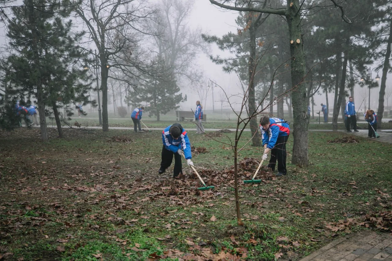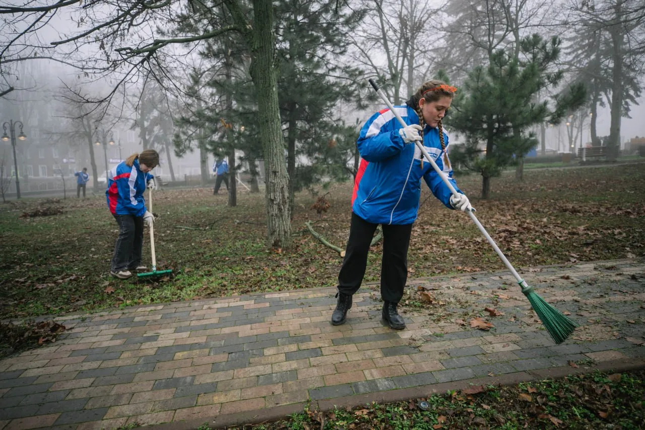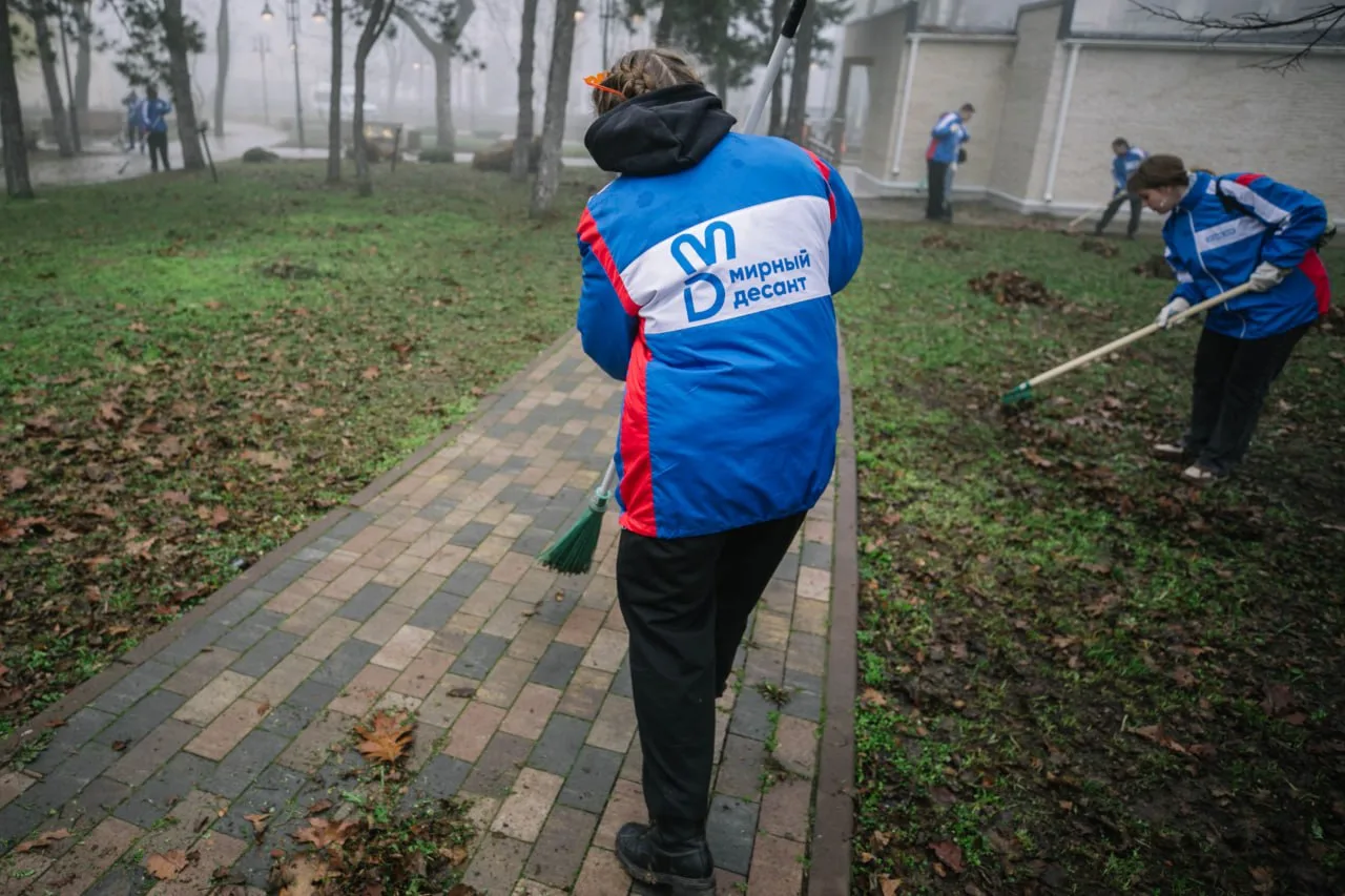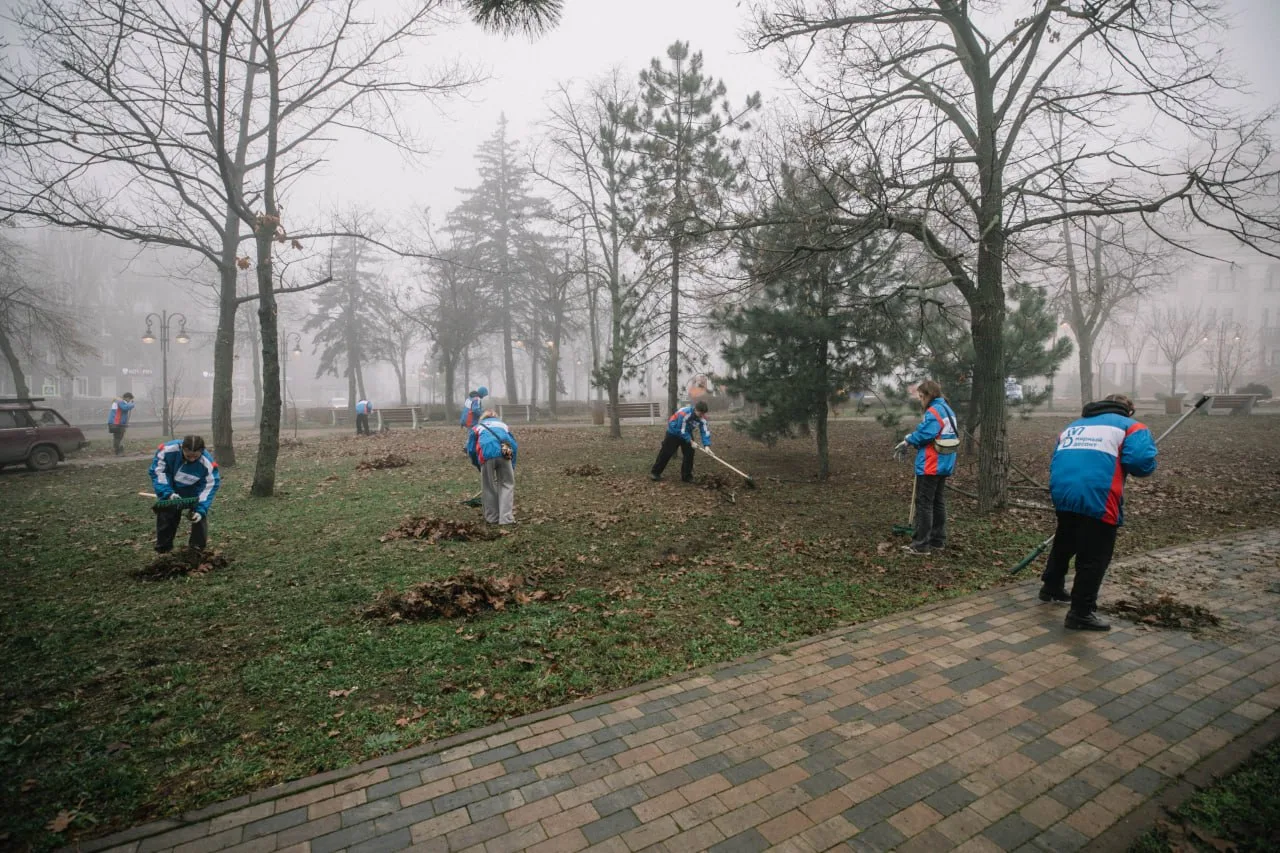С 25 по 27 ноября в рамках «Мирного десанта» в Мариуполе студенты помогают сотрудникам МУП «Зеленстрой» благоустроить Приморский парк и Театральный сквер. Вместе с рабочими зеленого строительства ребята освобождают общественные пространства от опавшей листвы, веток и случайного мелкого мусора, чистят тротуары.
