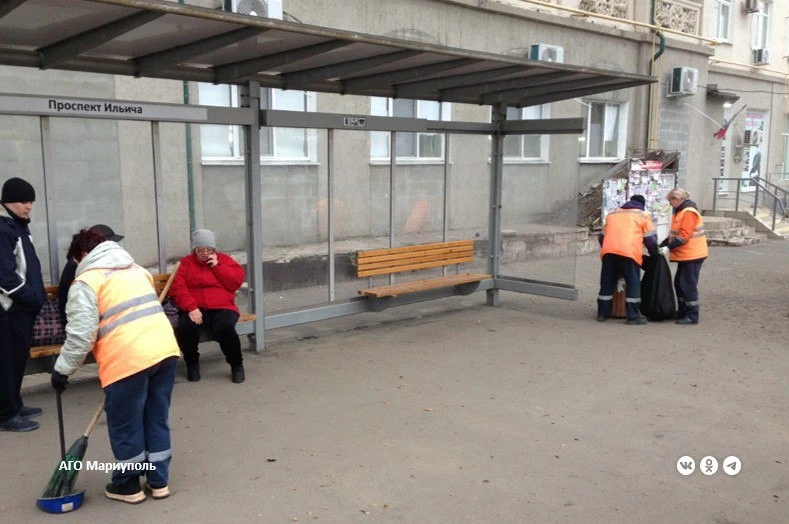 Ежедневно сотрудники МУП «Мариупольавтодор» убирают до 80 остановочных павильонов.