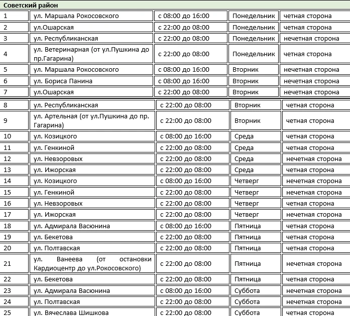 Работы планируют вести в основном ночью и рано утром, но некоторые улицы придется чистить днем. Чаще всего техника будет работать с 22:00 до 08:00, а также с 21:00 до 06:00.