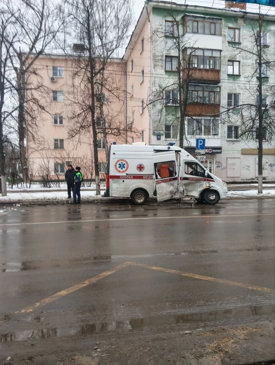 Момент ДТП в Дзержинске попал на видео. На нем видно, как один из автомобилей останавливается, чтобы пропустить «скорую» на перекрестке, но в следующий момент в нее врезается Kia Rio.