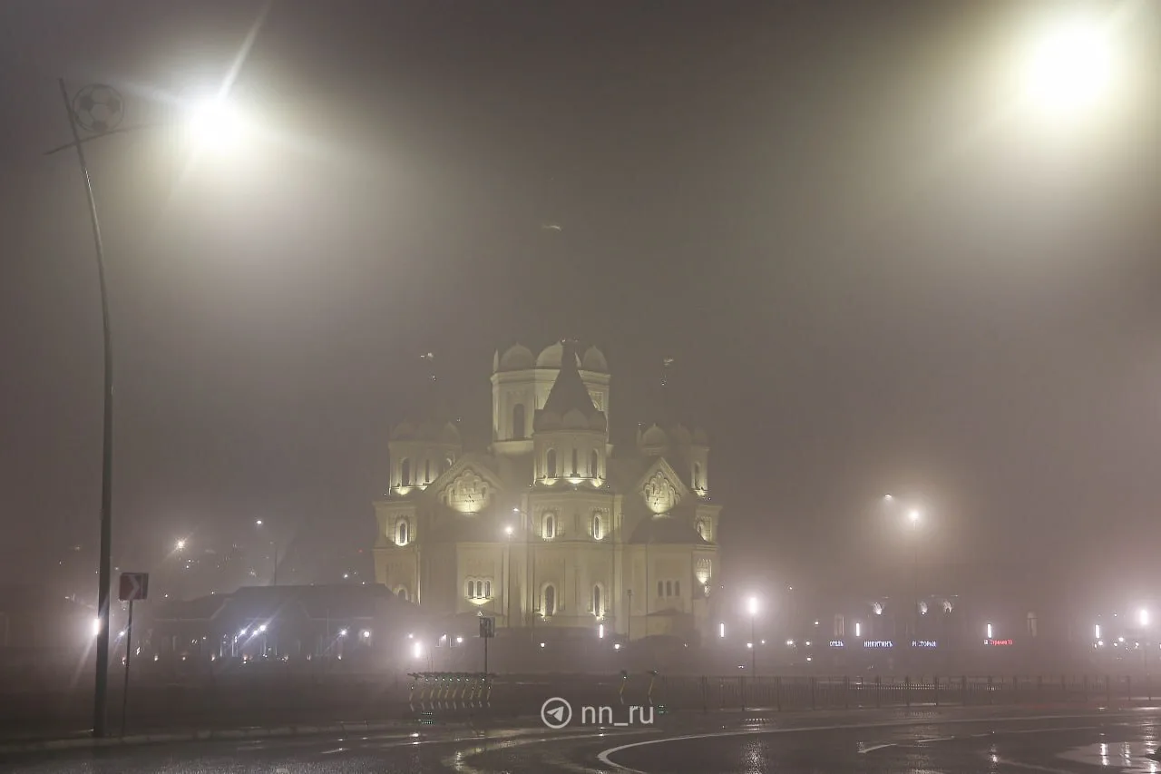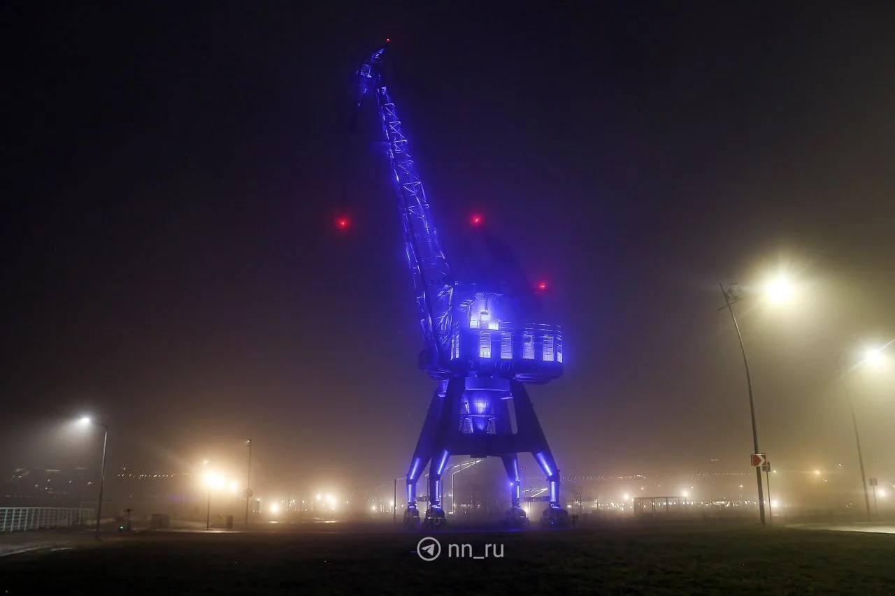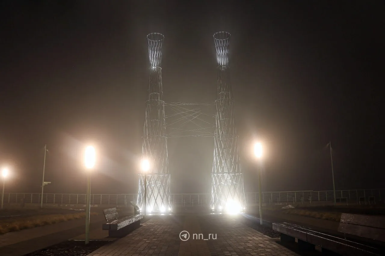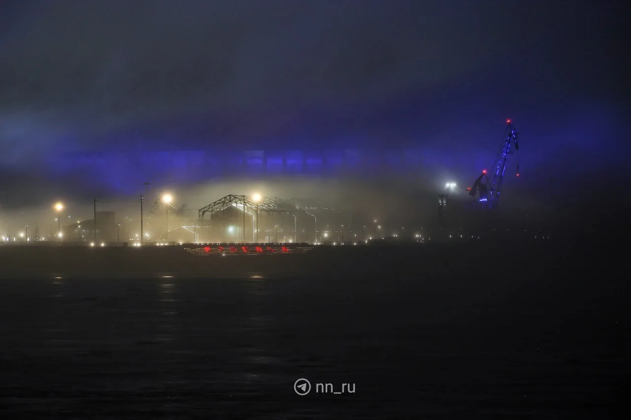 Туман и сине-фиолетовая подсветка украсили Нижний вчера вечером 🩵