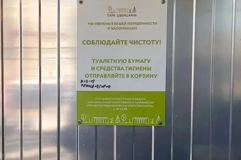 Весенние каникулы у школьников стали испытанием для «Швейцарии»: малолетние вандалы испортили и разрисовывали имущество парка.