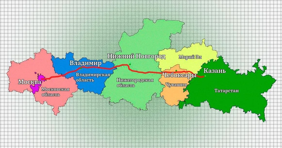 Планируется, что ВСМ-2 соединит Москву с крупными городами по пути — Нижним Новгородом, Чебоксарами и Казанью.