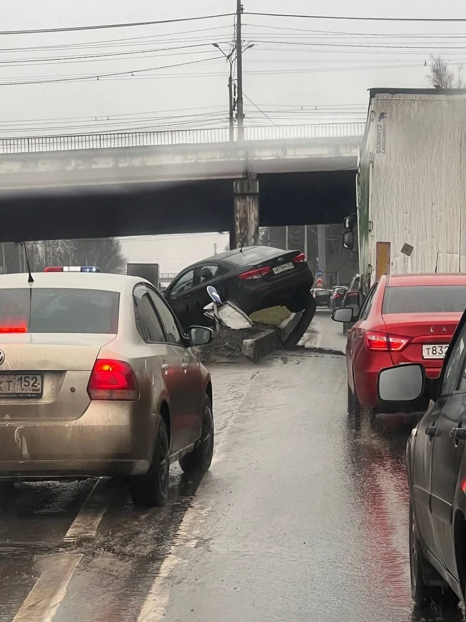 От подписчика: ДТП на подъёме по улице Ларина в Нижнем Новгороде.