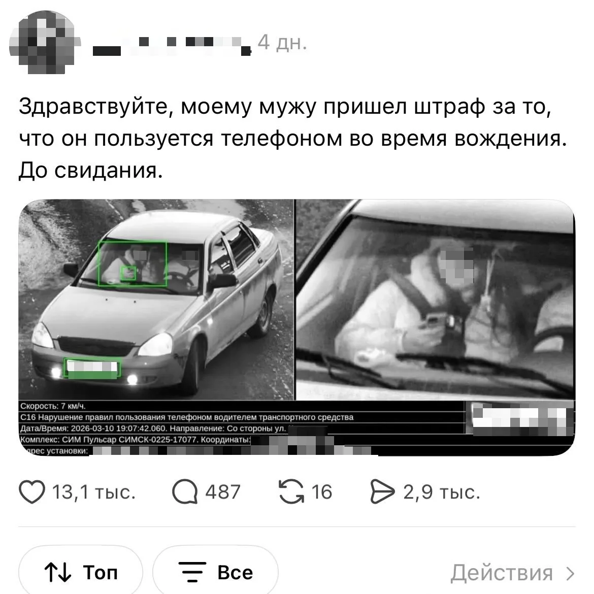 17 марта водителю пришел штраф 1500₽. Камеры автоматически приняли, что мужчина говорит по телефону.