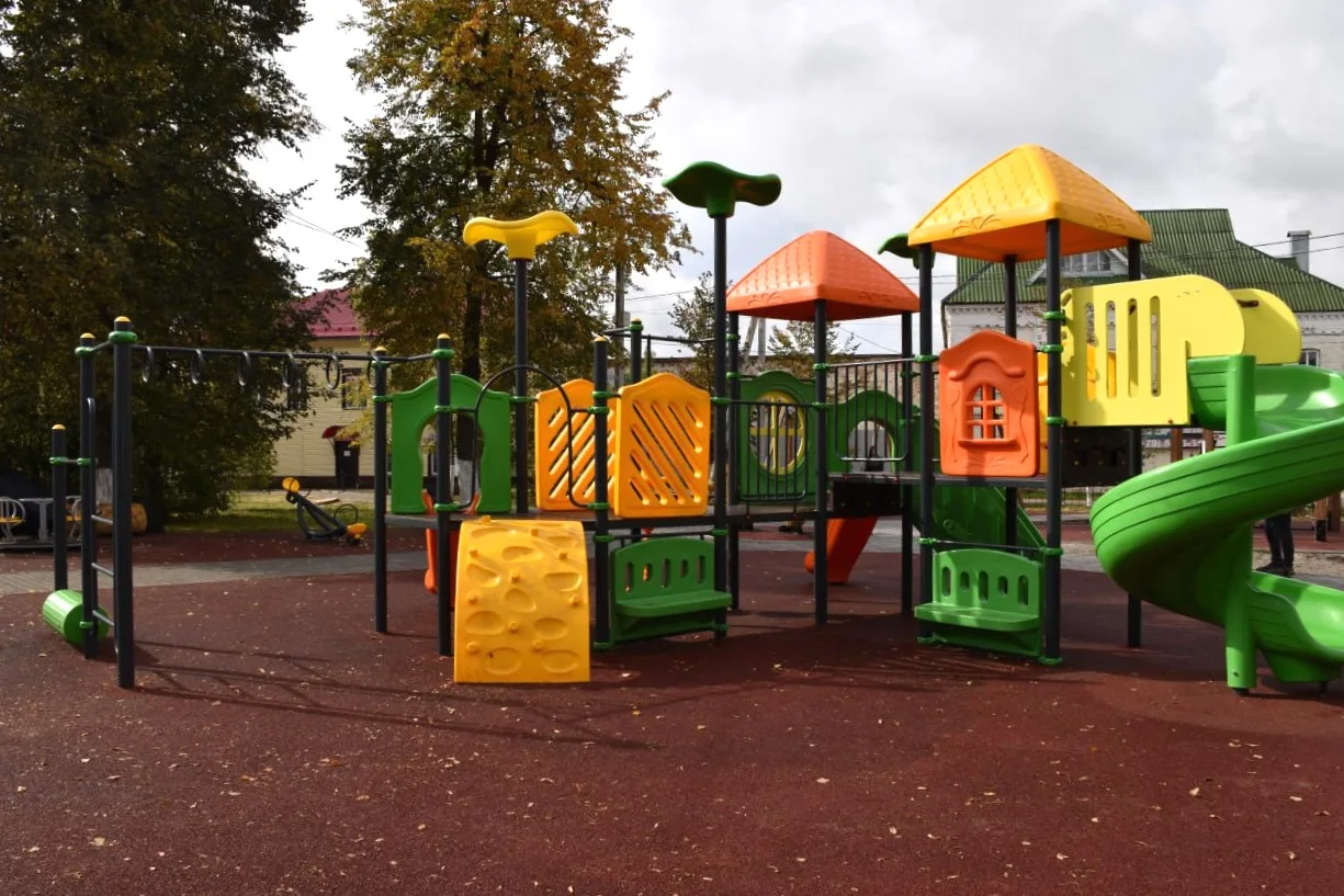 На площадке есть игровой и спортивный комплексы, качели, карусели, качалка-балансир, также здесь установлены новые лавочки и урны. При строительстве был учтен важный фактор – безопасность, поэтому здесь предусмотрено ударопоглощающее прорезиненное покрытие.