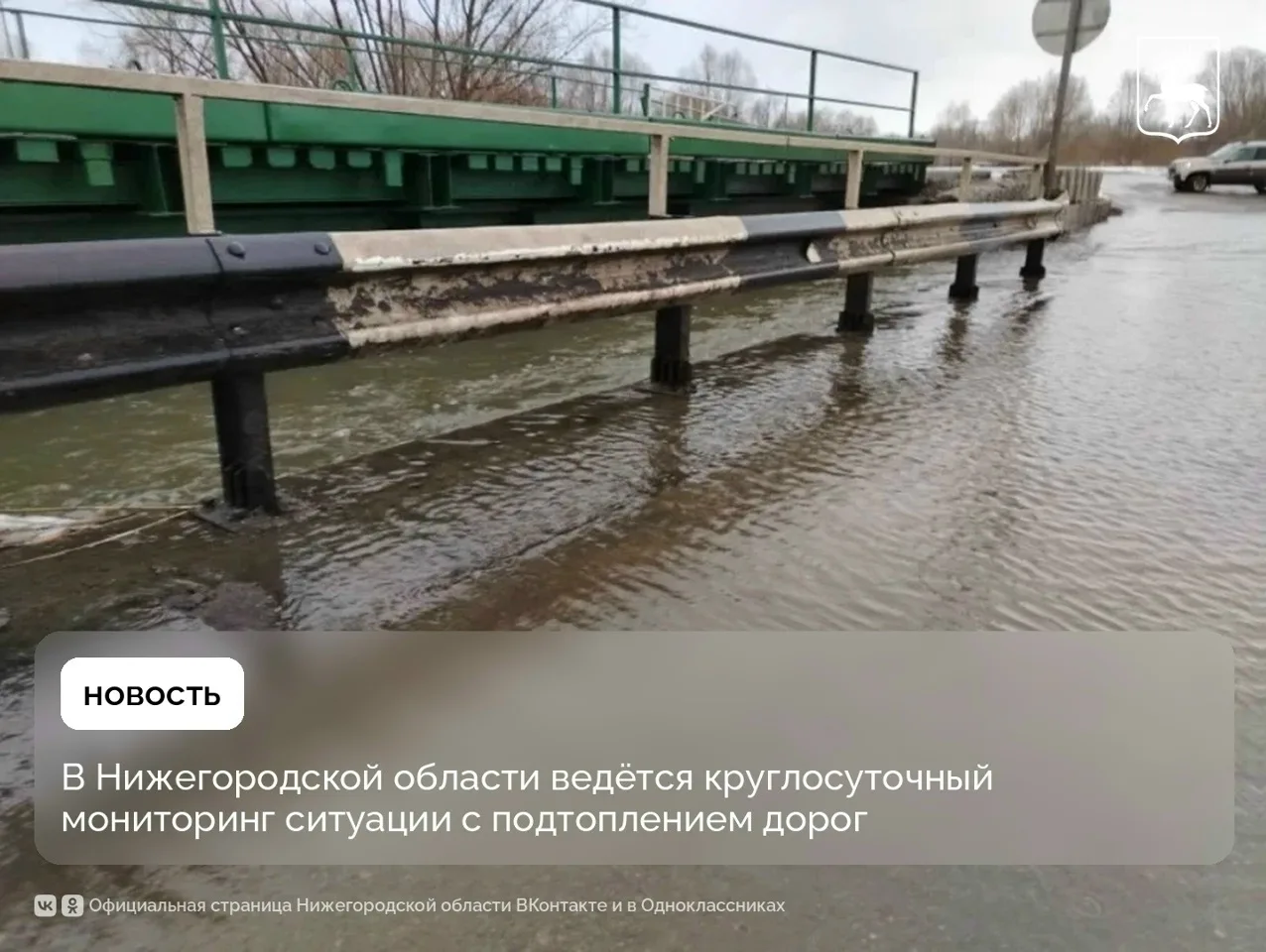 Главное управление автомобильных дорог Нижегородской области ведет круглосуточный мониторинг ситуации с подтоплением дорог в регионе. Есть участки региональных и межмуниципальных дорог, где зафиксированы переливы воды через проезжую часть мостов.